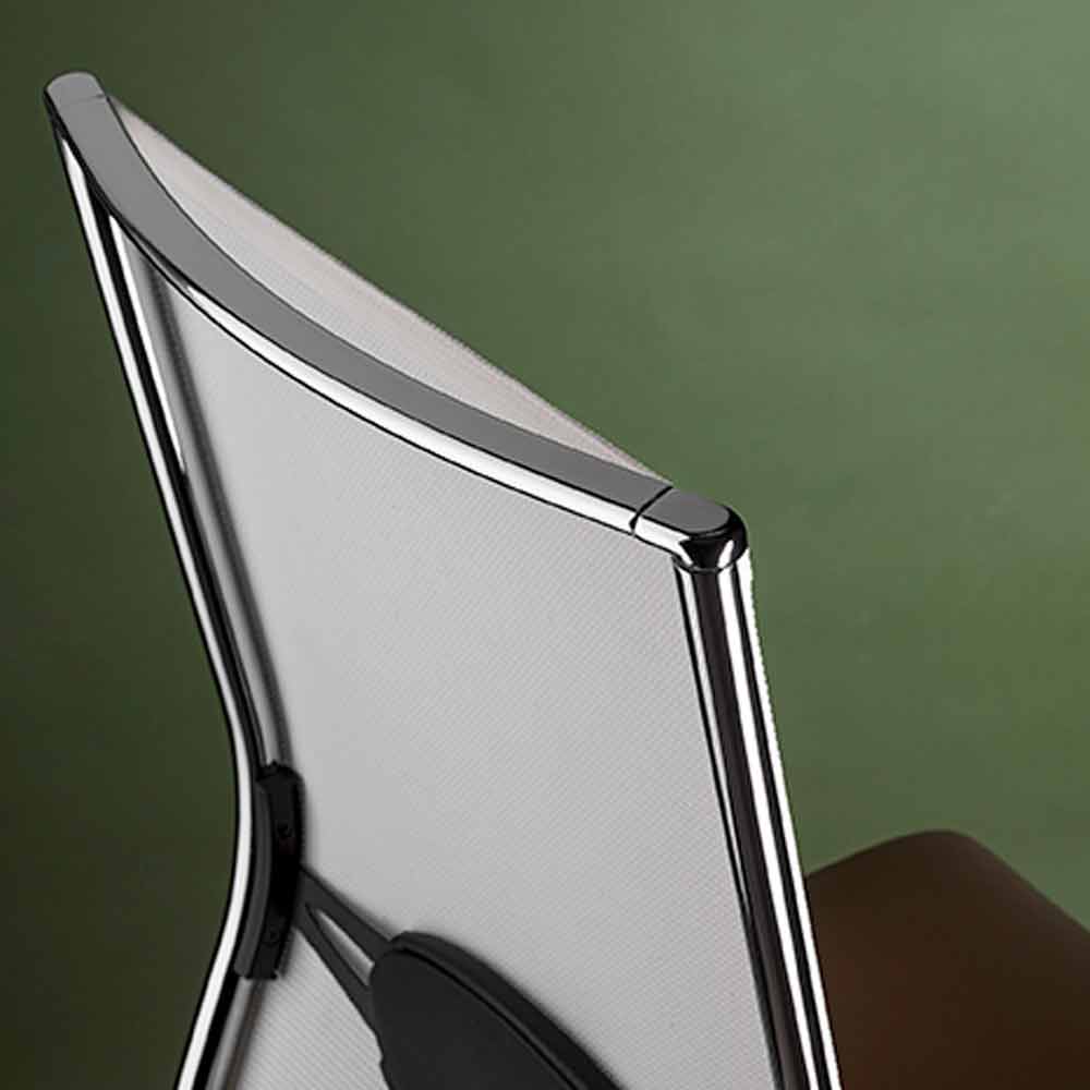 estrutura giratória em aço e rodas com acabamentos em cromado brilhante, a rede elástica do encosto e o inovador sistema de molas protegidas no interior do banco criam uma simbiose de