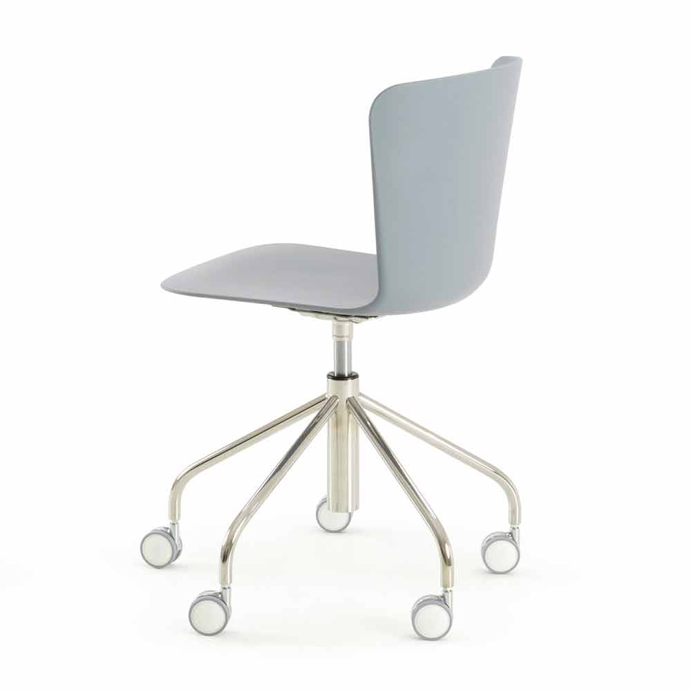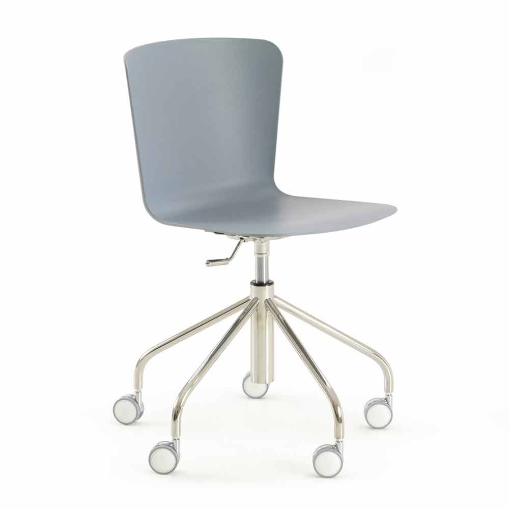 Cadeira de escritório moderna made in Italy com concha de polietileno e estrutura de metal cromado de 5 raios , giratória e ajustável em altura com rodas.