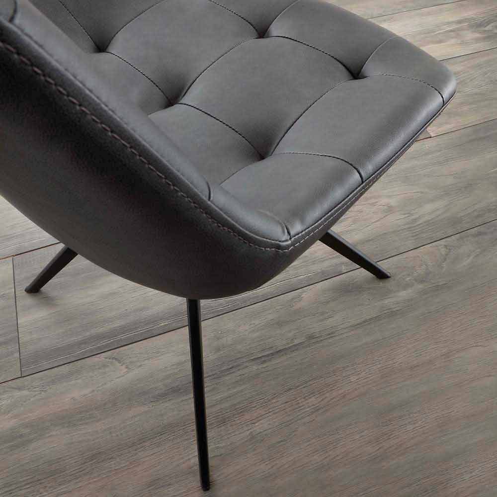 Máximo conforto assegurado nesta cadeira, confeccionada com estrutura metálica pintada de preto e assento estofado em tecido ou eco-nubuck disponível em quatro cores diferentes: