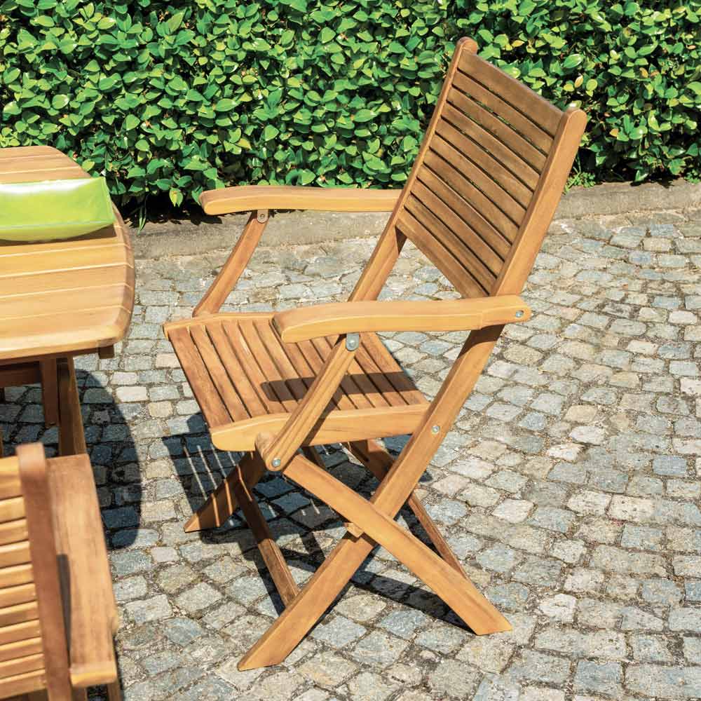 Esta cadeira dobrável em madeira de acácia é perfeita para o jardim. Habilmente trabalhada, esta cadeira combina funcionalidade e design para proporcionar uma experiência de conforto excepcional ao ar livre.