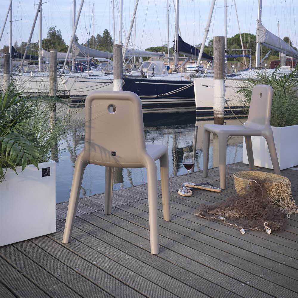 Pensada para quem deseja praticidade e suavidade, esta cadeira fabricada inteiramente na Itália em polietileno colorido caracteriza-se por um design minimalista e ergonômico que oferece a possibilidade de escolher entre 7 variações de cores diferentes capazes de iluminar todos os espaços, do doméstico ao ambiente de refresco.