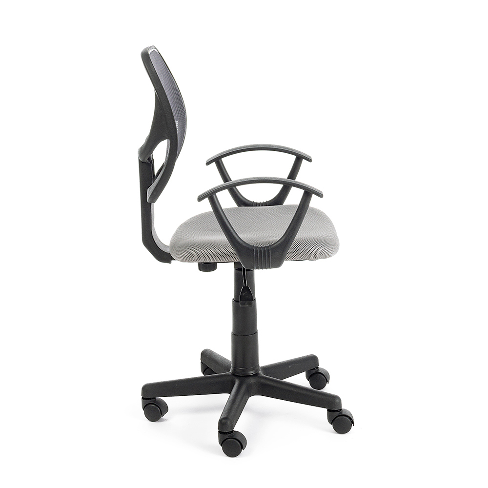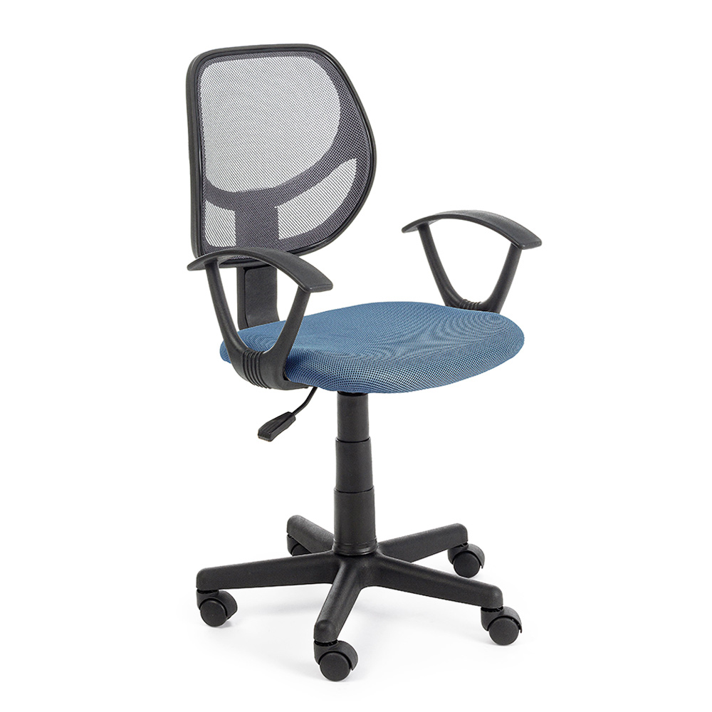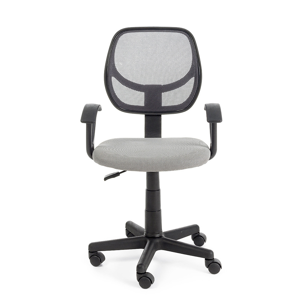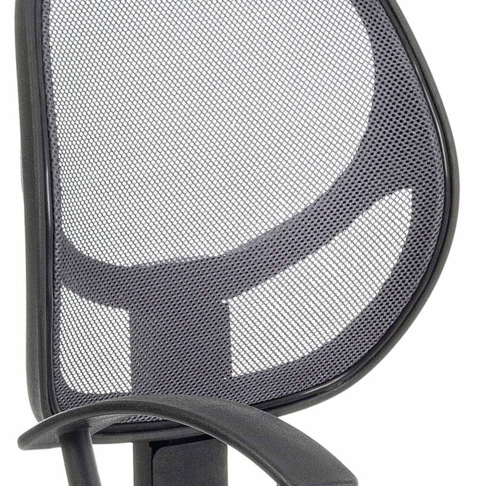 Esta cadeira de escritório é feita com uma base sólida de náilon de53 cm de diâmetro e rodas de náilon. O assento acolchoado ajustável em altura e o encosto são revestidos em tecido de malha. Apoio de braço em plástico (polipropileno). Design para montar.