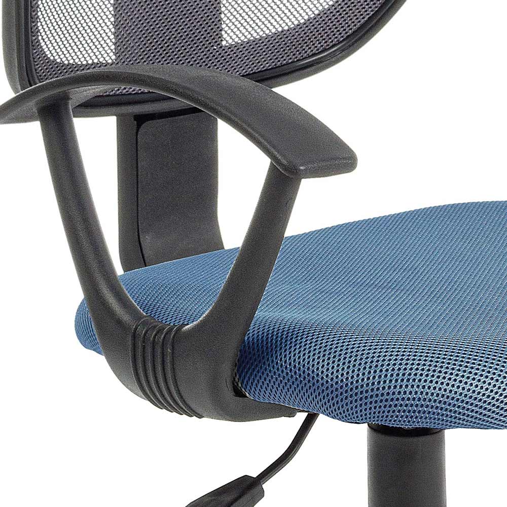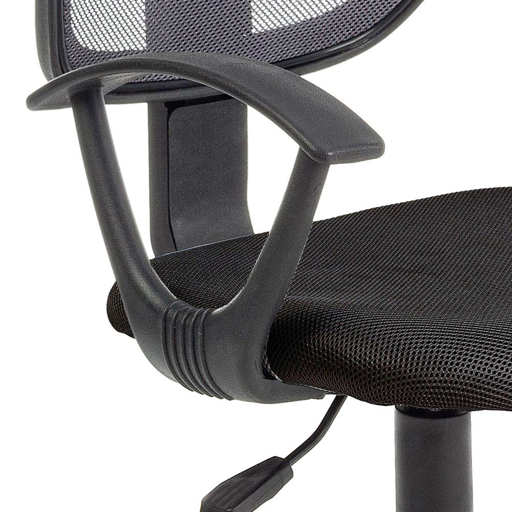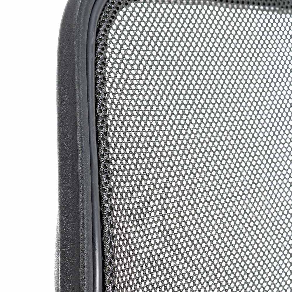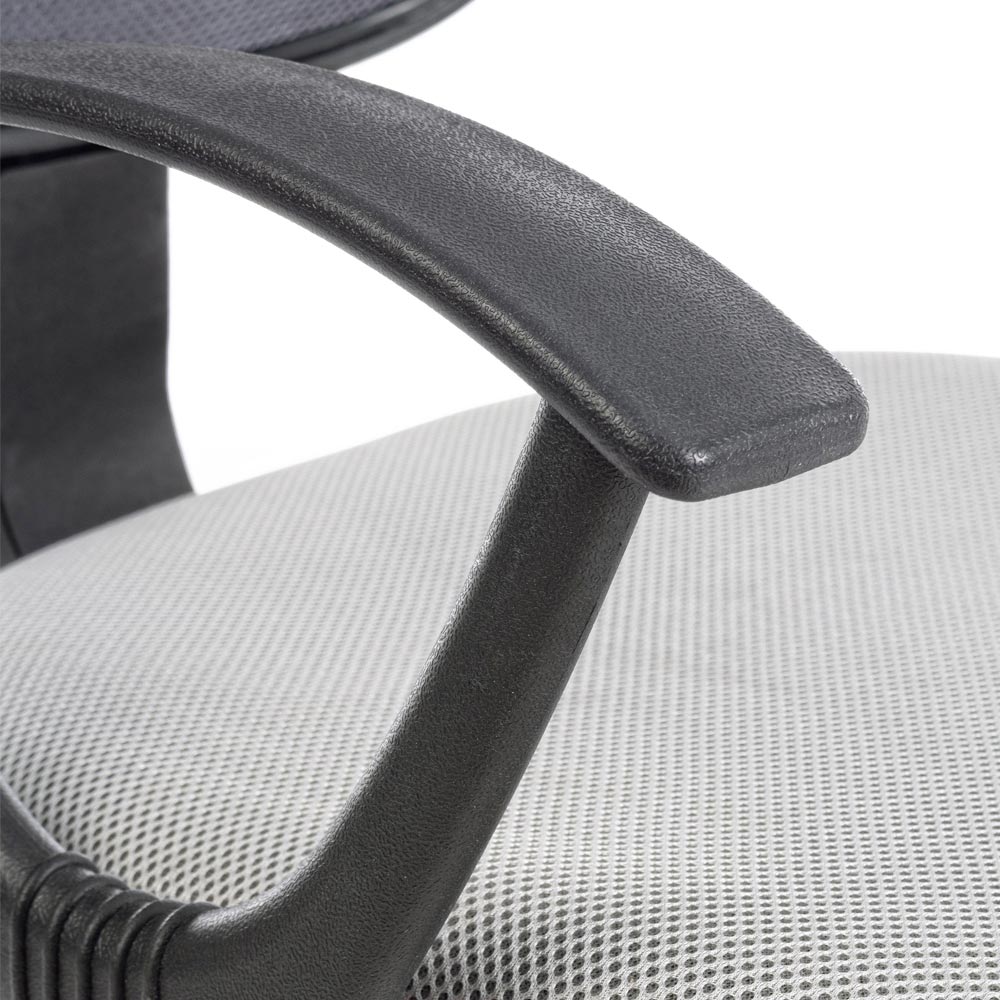 Esta cadeira de escritório é feita com uma base sólida de náilon de53 cm de diâmetro e rodas de náilon. O assento acolchoado ajustável em altura e o encosto são revestidos em tecido de malha. Apoio de braço em plástico (polipropileno). Design para montar.