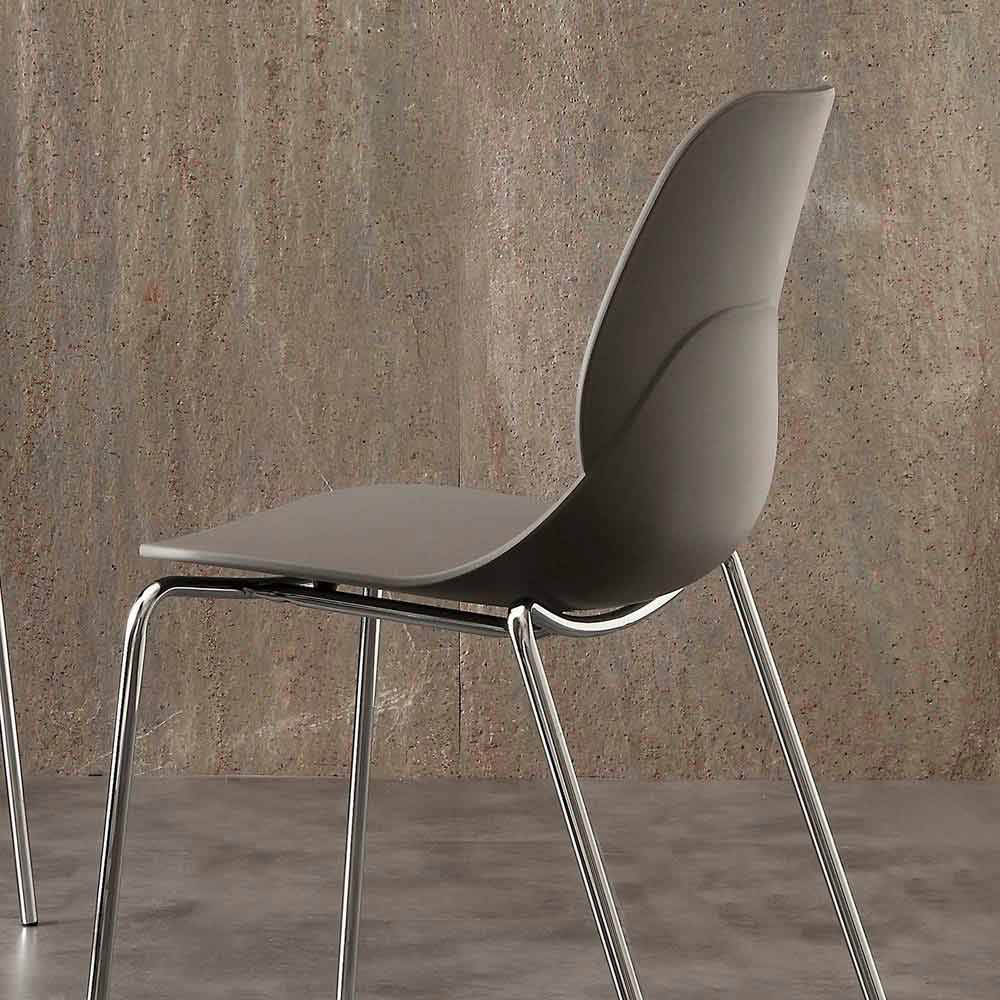 Cadeira Licata com estrutura em polipropileno e pés cromados, design moderno.