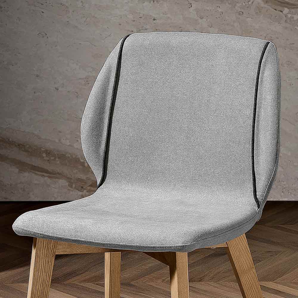 Transforme a sua sala de jantar num espaço mais confortável e elegante com a moderna cadeira monocoque com assento forrado em tecido hidrorrepelente colorido com debrum disponível em diferentes variantes de cores: