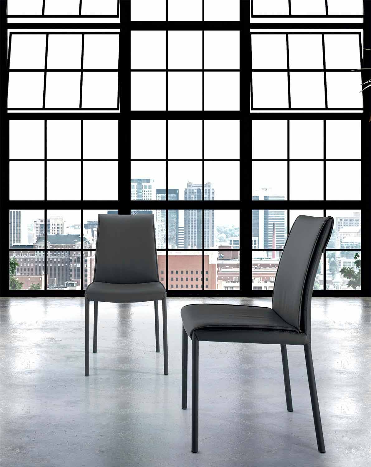 estrutura de aço e pernas totalmente revestidas em veludo, couro, tecido ou couro ecológico. Graças às suas linhas suaves e modernas é ideal para ambientes contemporâneos tanto em espaços domésticos como não domésticos.