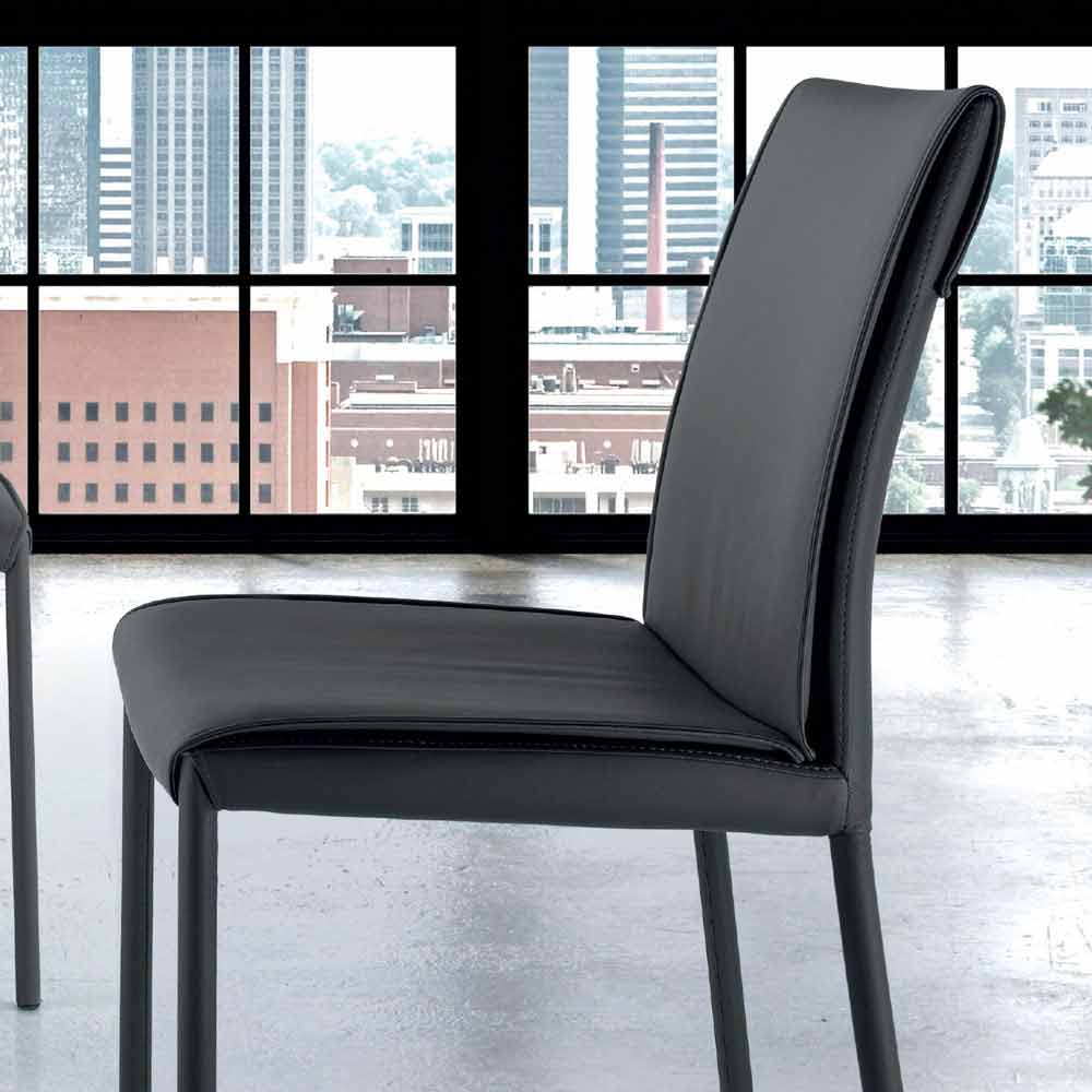 Cadeira de sala de jantar acolchoada totalmente revestida em tecido, couro, veludo ou couro ecológico; feito à mão na Itália.