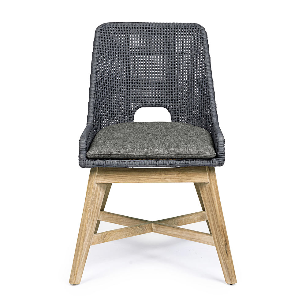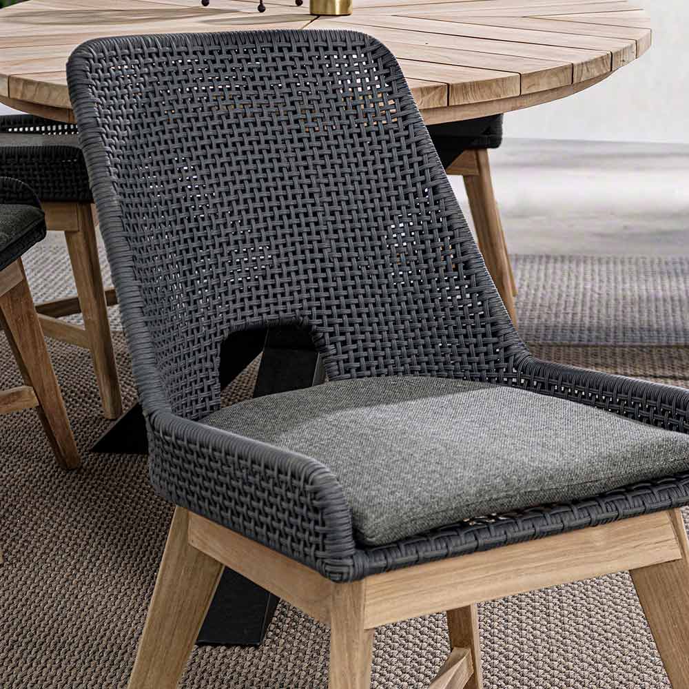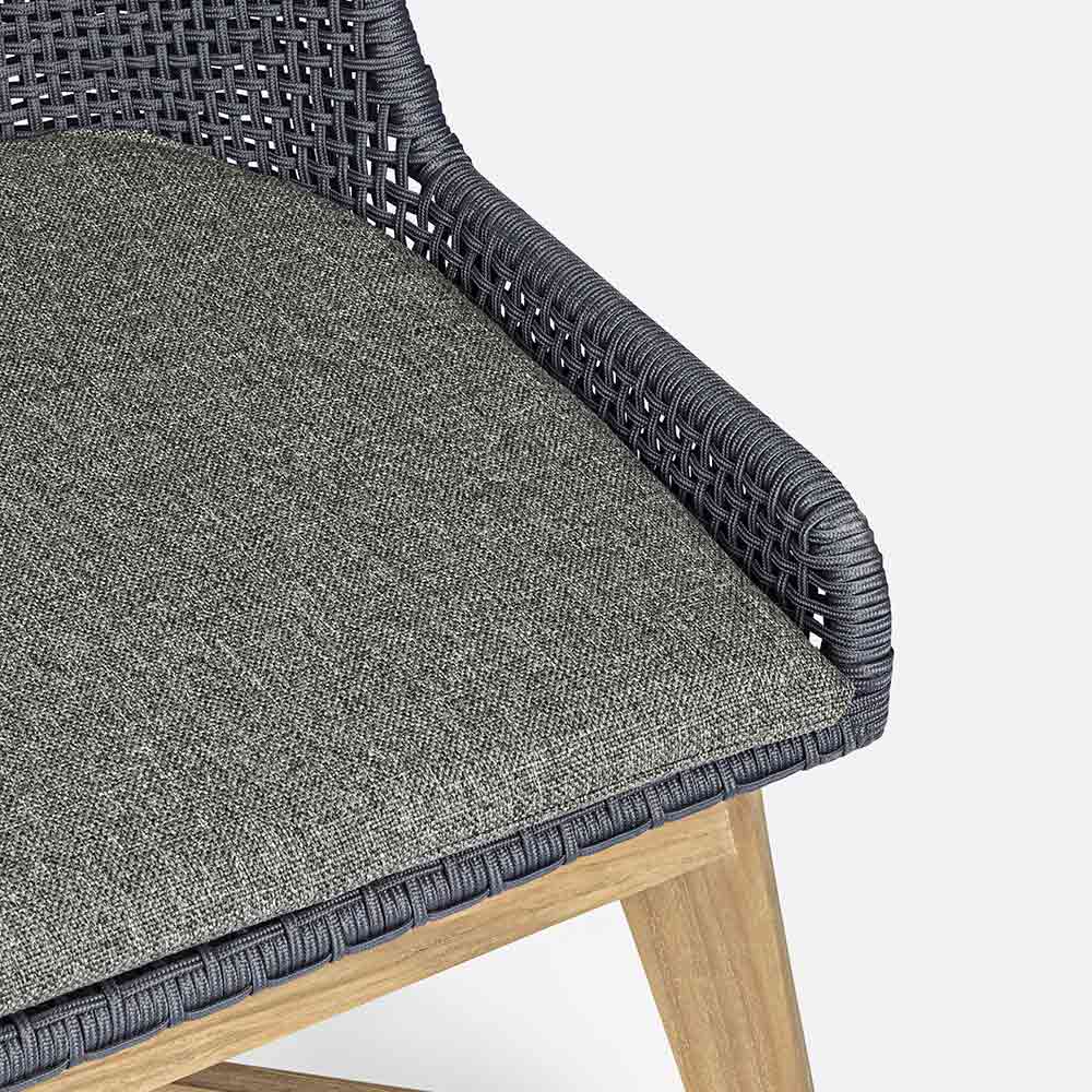 Cadeira de exterior com pernas em madeira de teca e assento em corda e tecido, 2 peças.