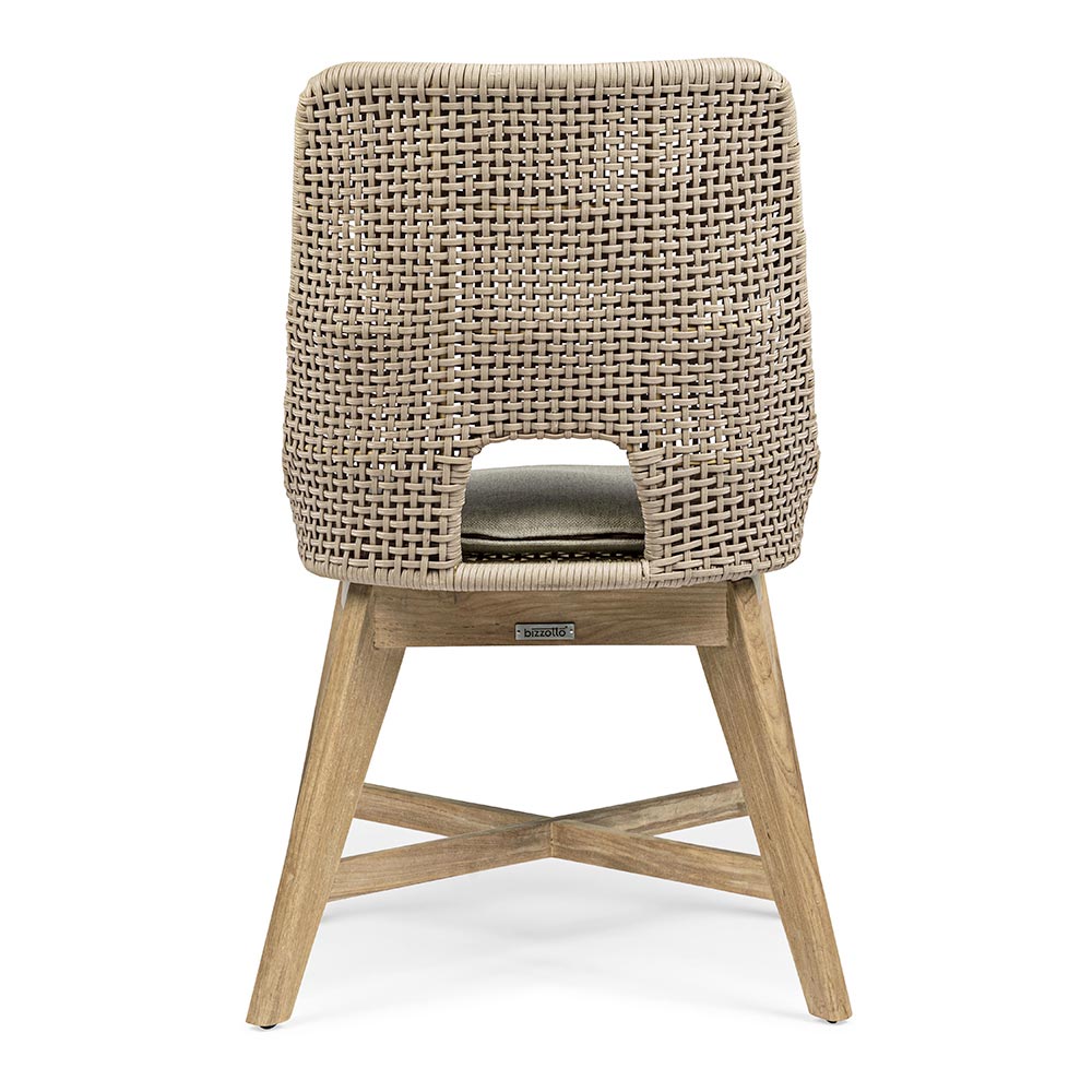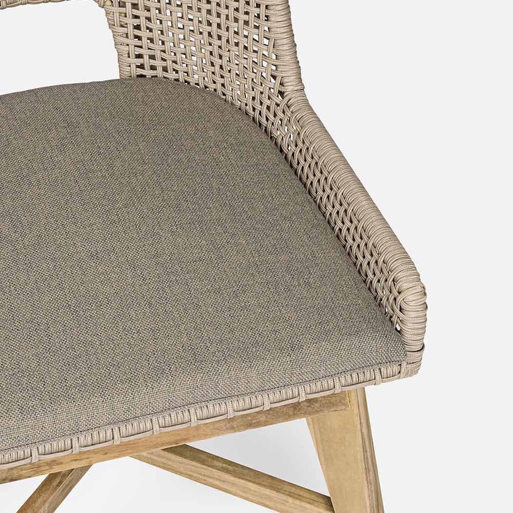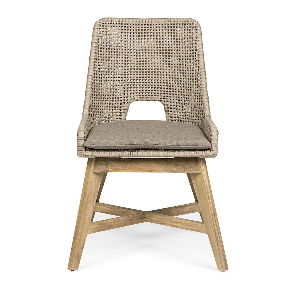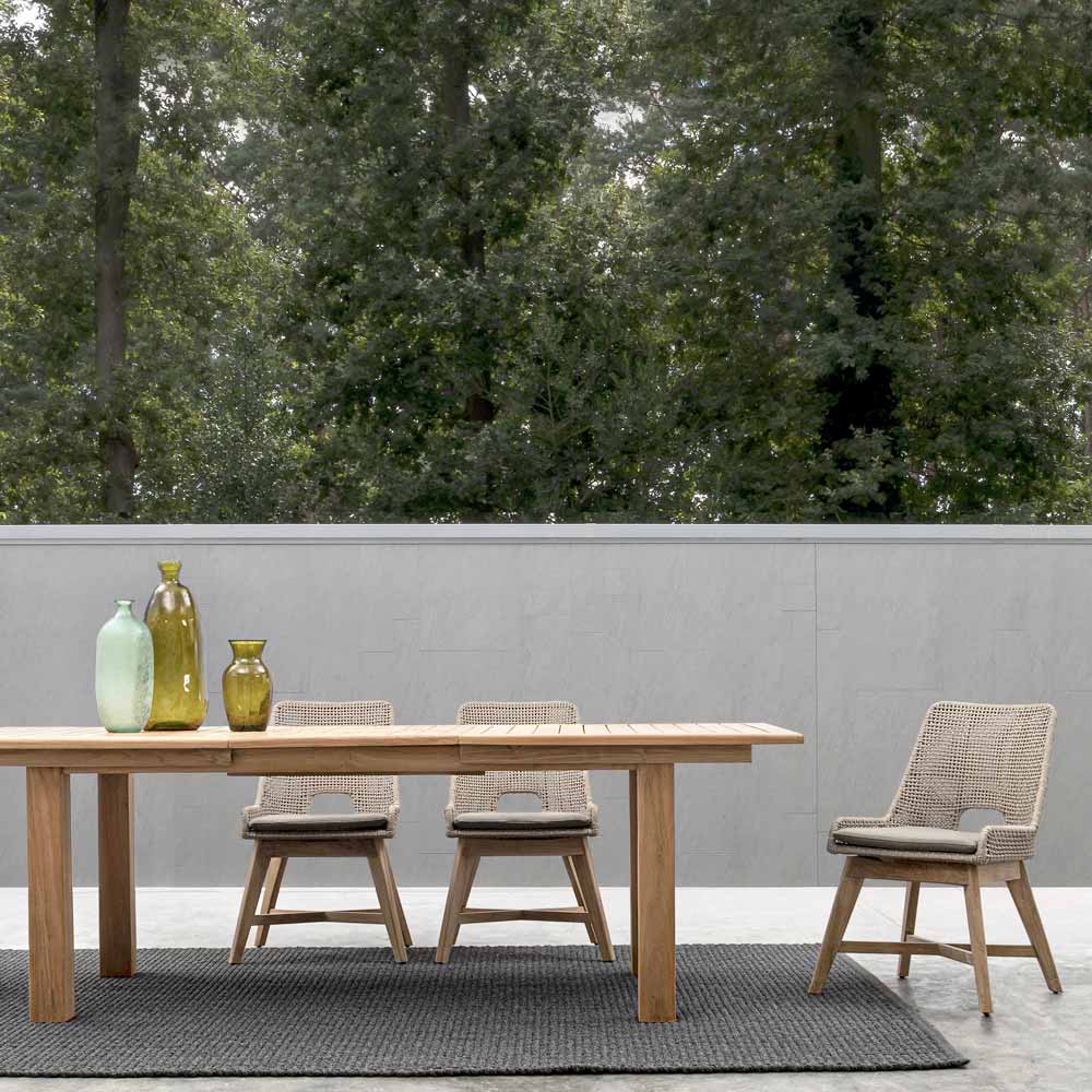 Cadeira de exterior com pernas em madeira de teca e assento em corda e tecido, 2 peças.