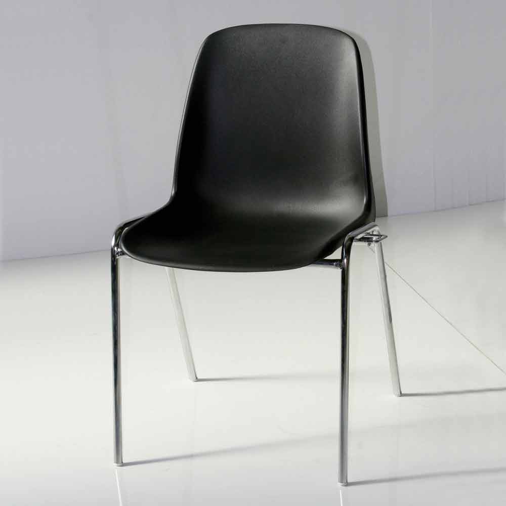 Cadeira para sala de reuniões ou sala de conferências moderna em metal cromado e ABS preto à prova de fogo.