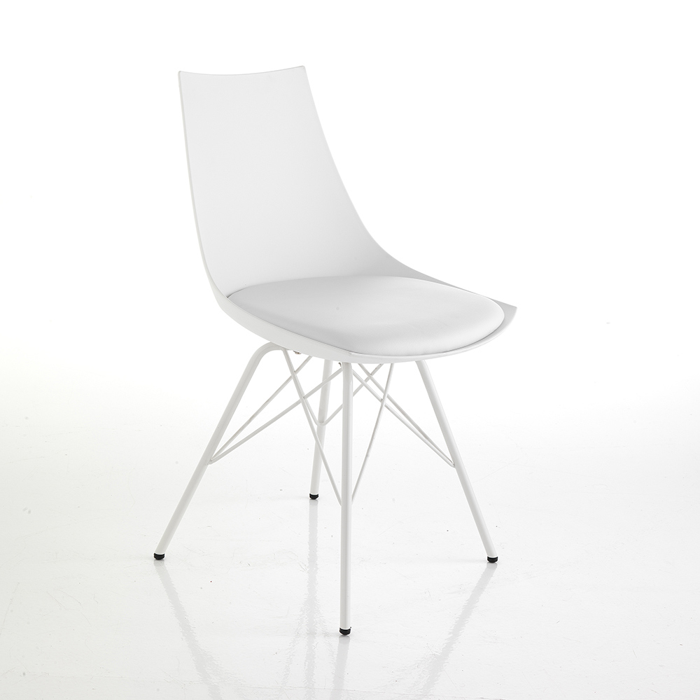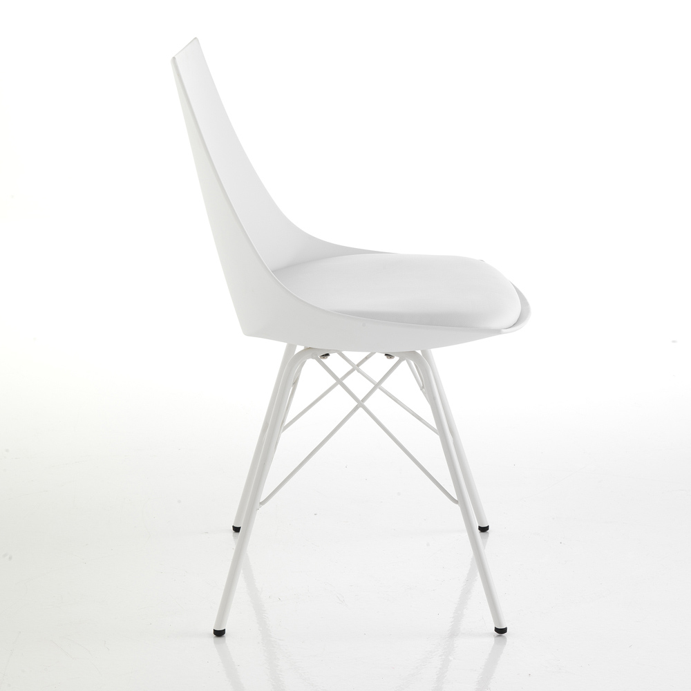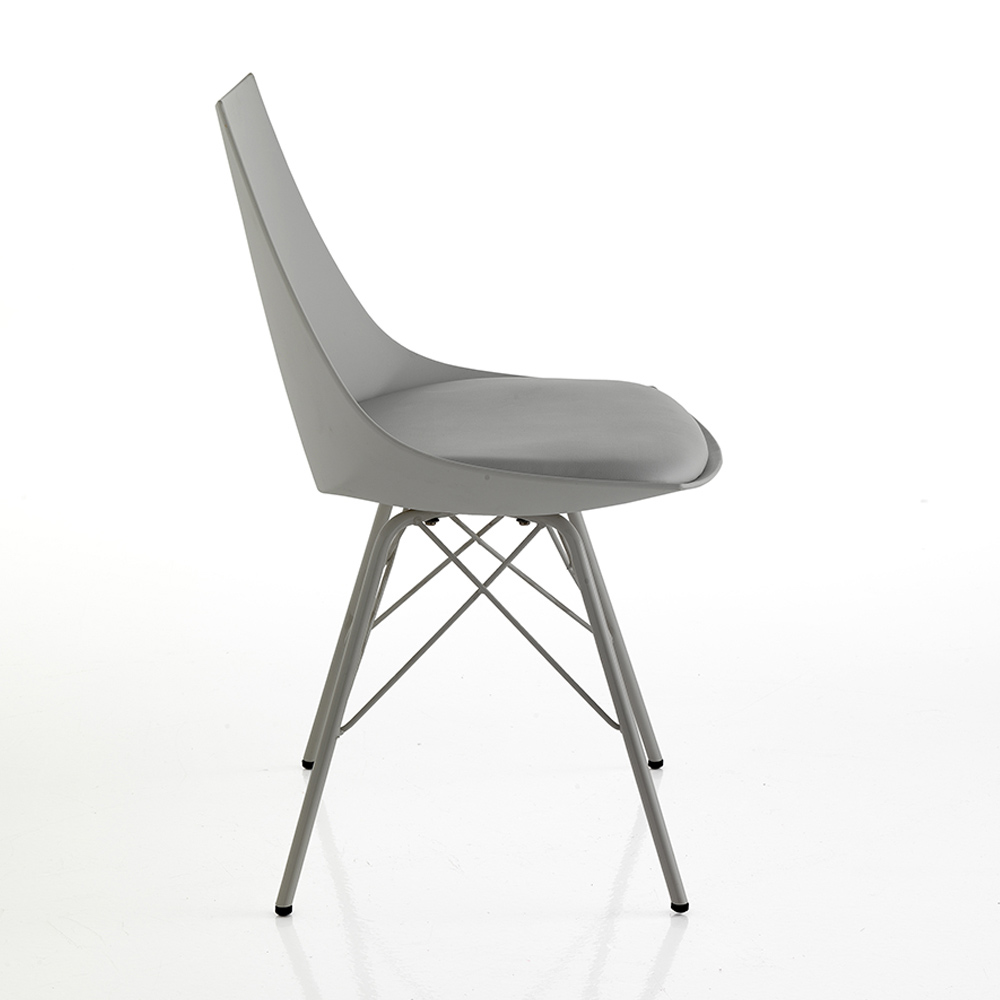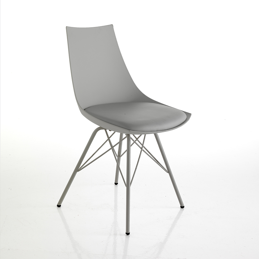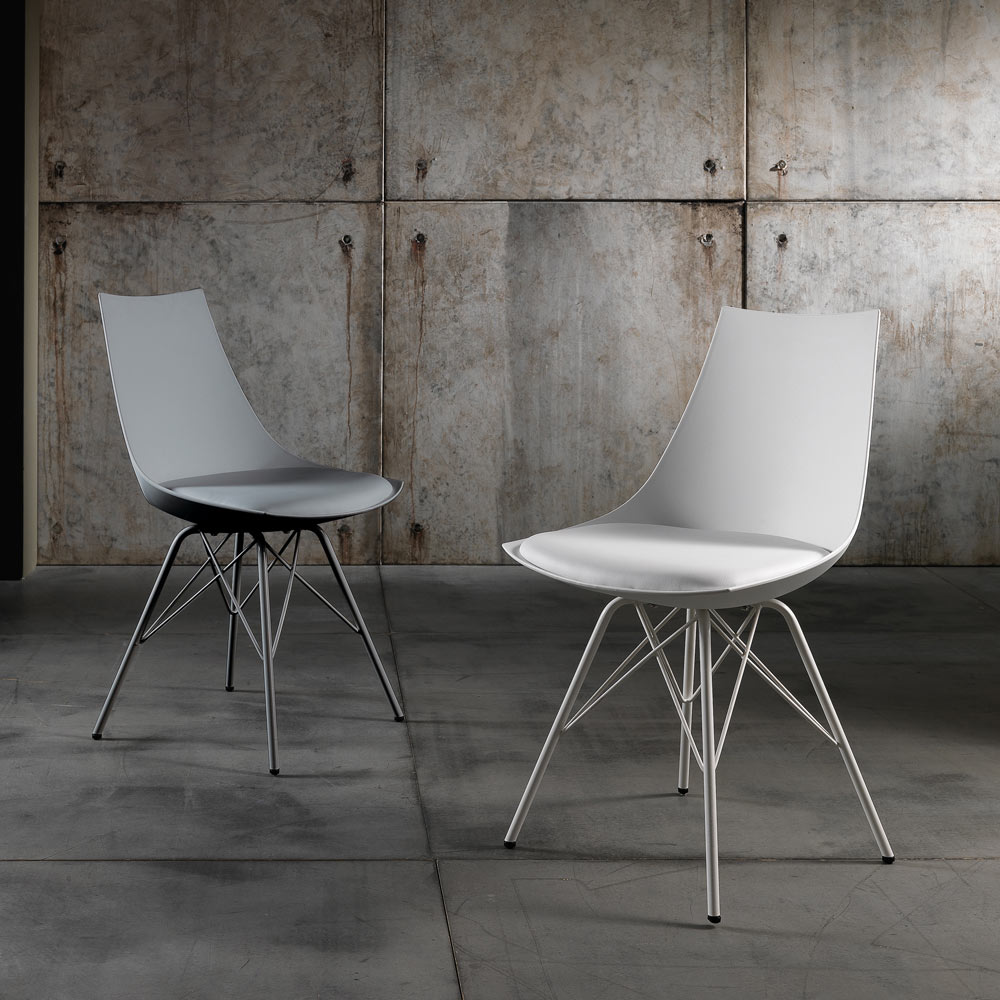 Cadeira para sala de jantar ou cozinha com estrutura em metal pintado com brilho , concha em polipropileno opaco e assento acolchoado revestido em couro sintético . Um complemento com um design inovador e requintado, ideal para situações de mobiliário moderno que exijam um toque de personalidade .