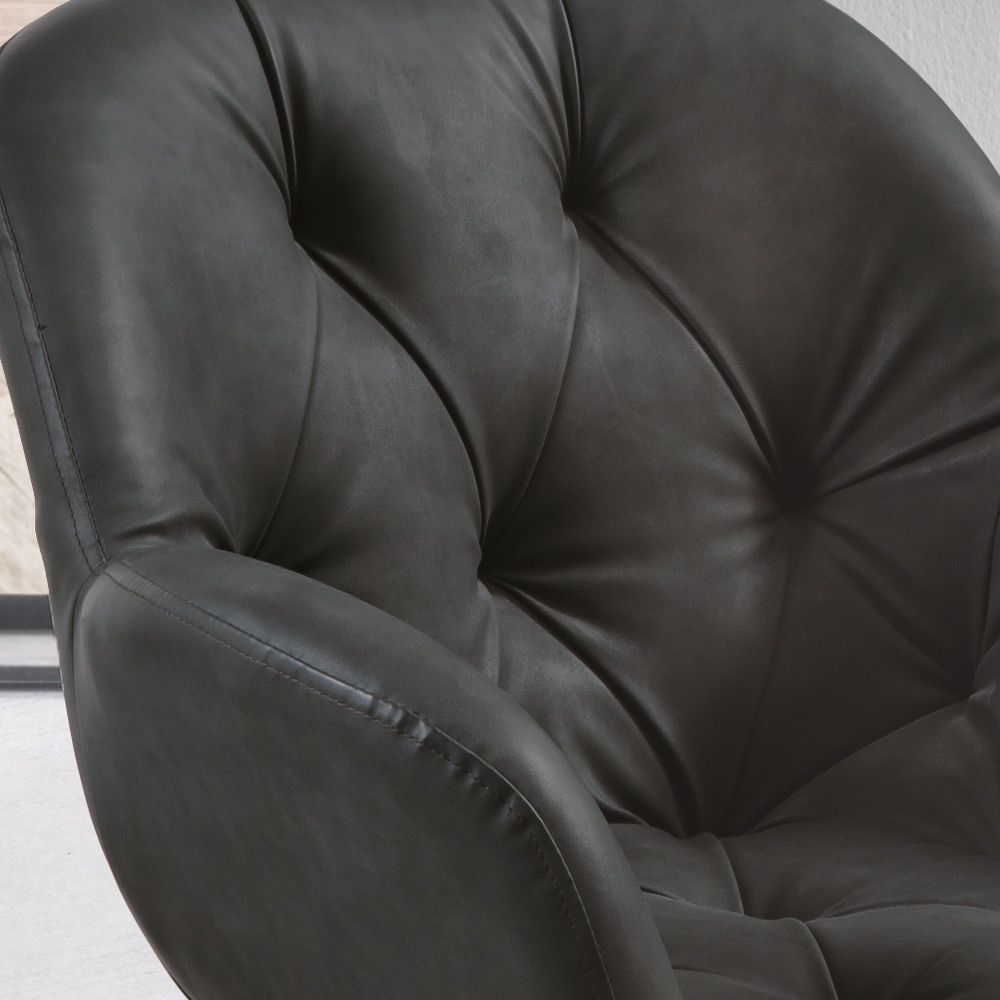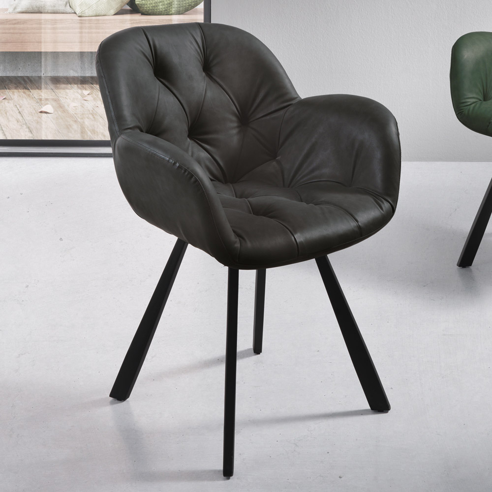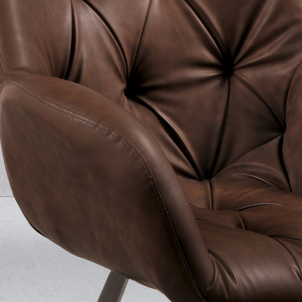 Cadeira de sala com estrutura em metal pintado e assento em pele ecológica.