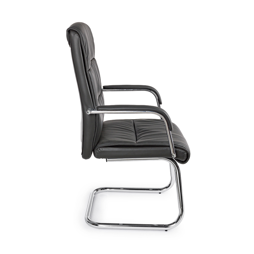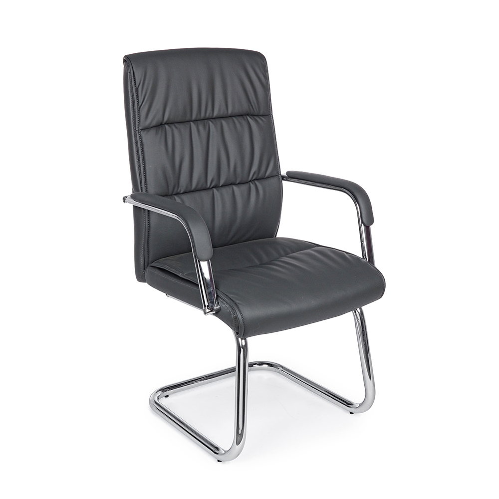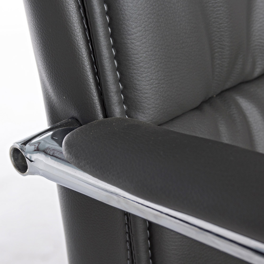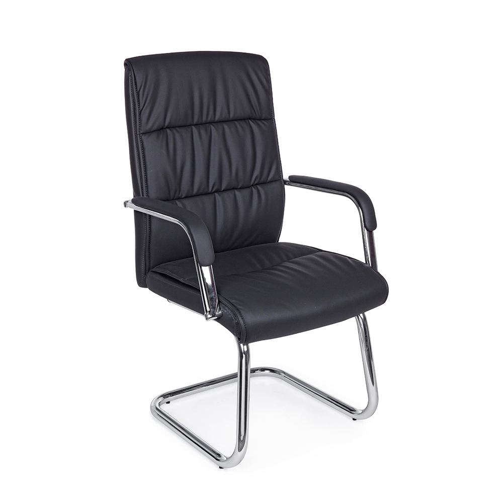Esta poltrona de escritório é feita com uma base sólida de aço cromado e assento e encosto estofados em couro sintético . Apoio de braços em aço cromado com revestimento em imitação de couro. Design para montar.