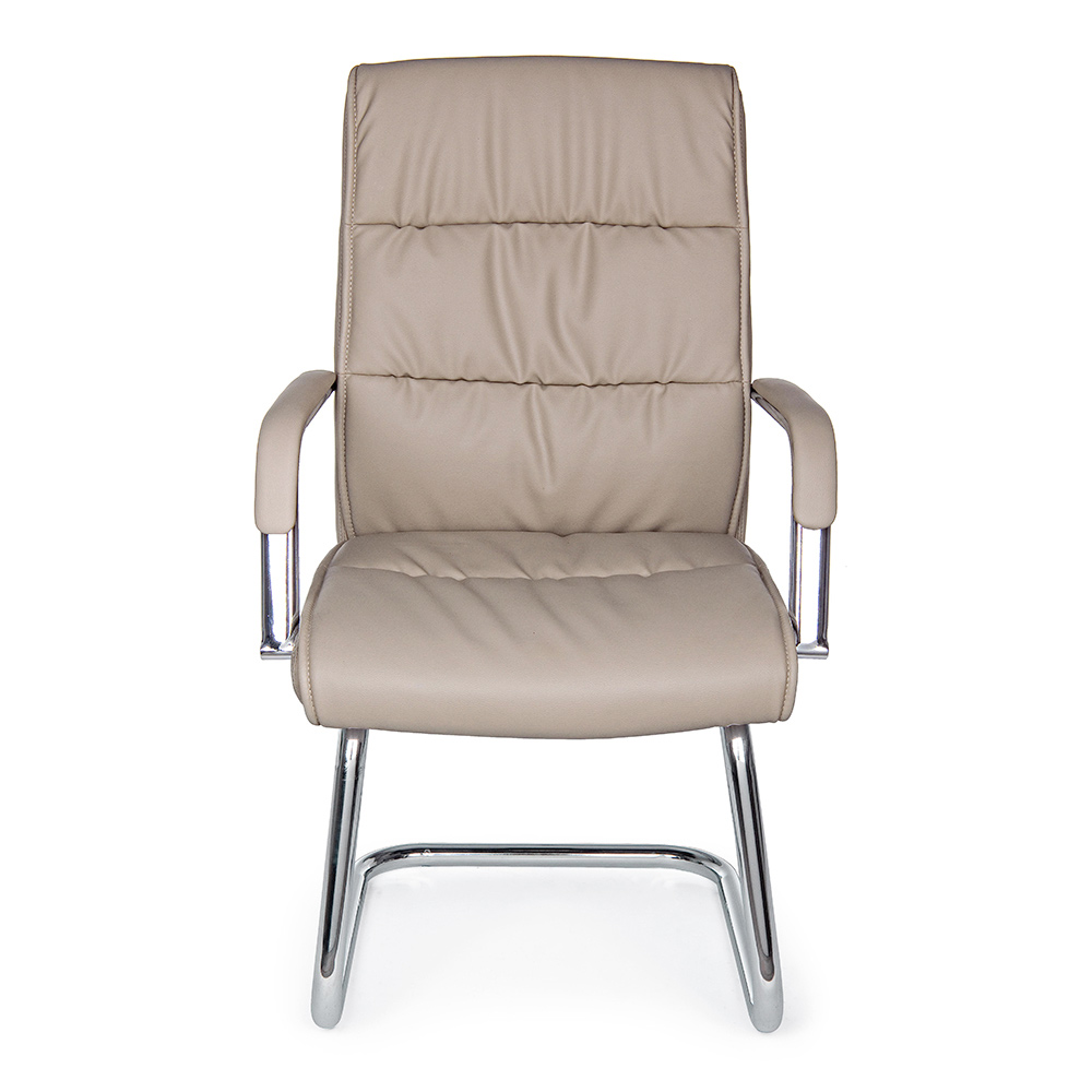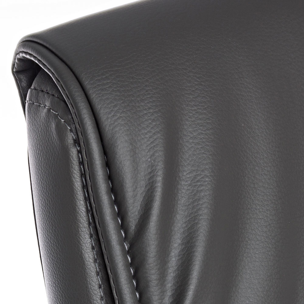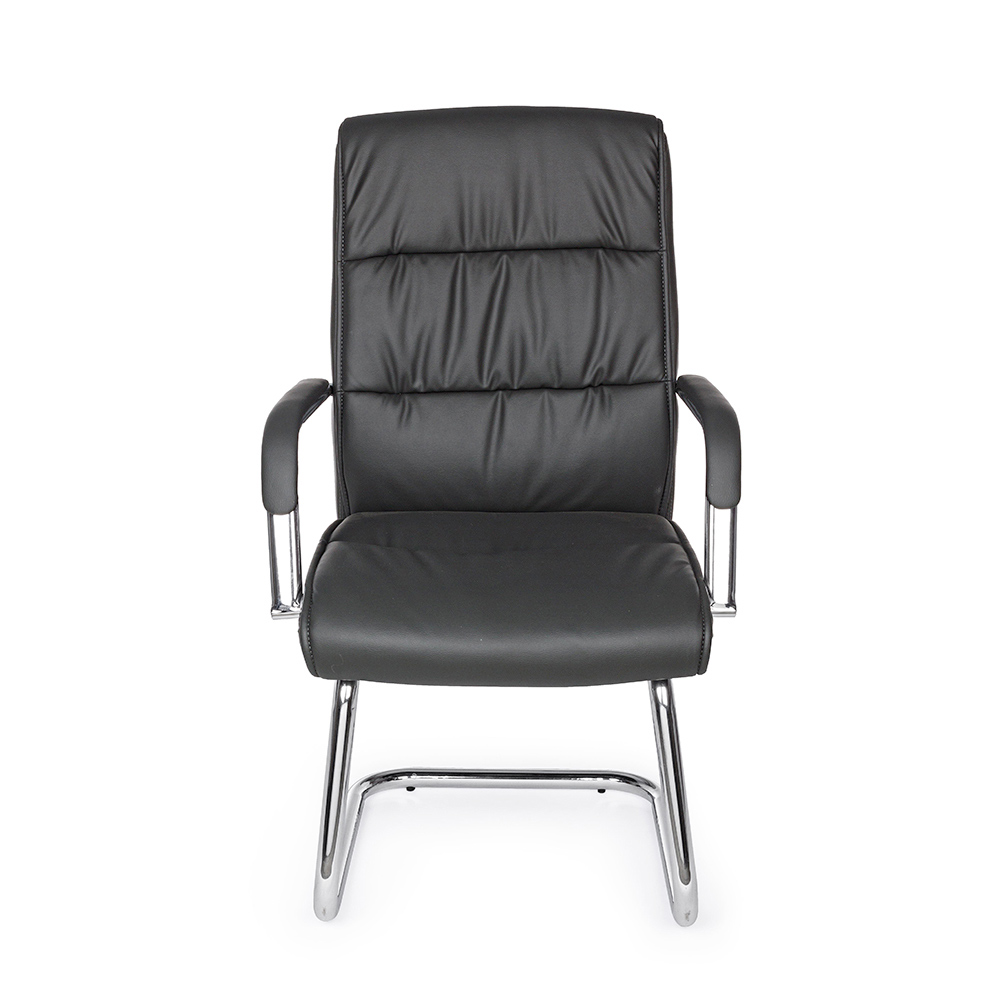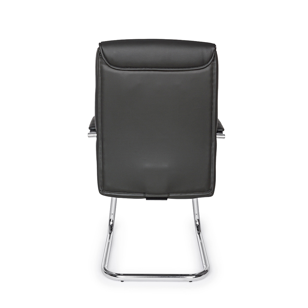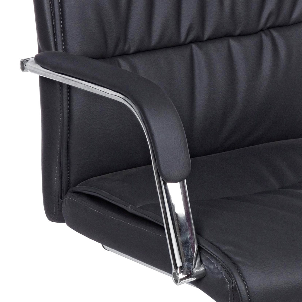 Esta poltrona de escritório é feita com uma base sólida de aço cromado e assento e encosto estofados em couro sintético . Apoio de braços em aço cromado com revestimento em imitação de couro. Design para montar.