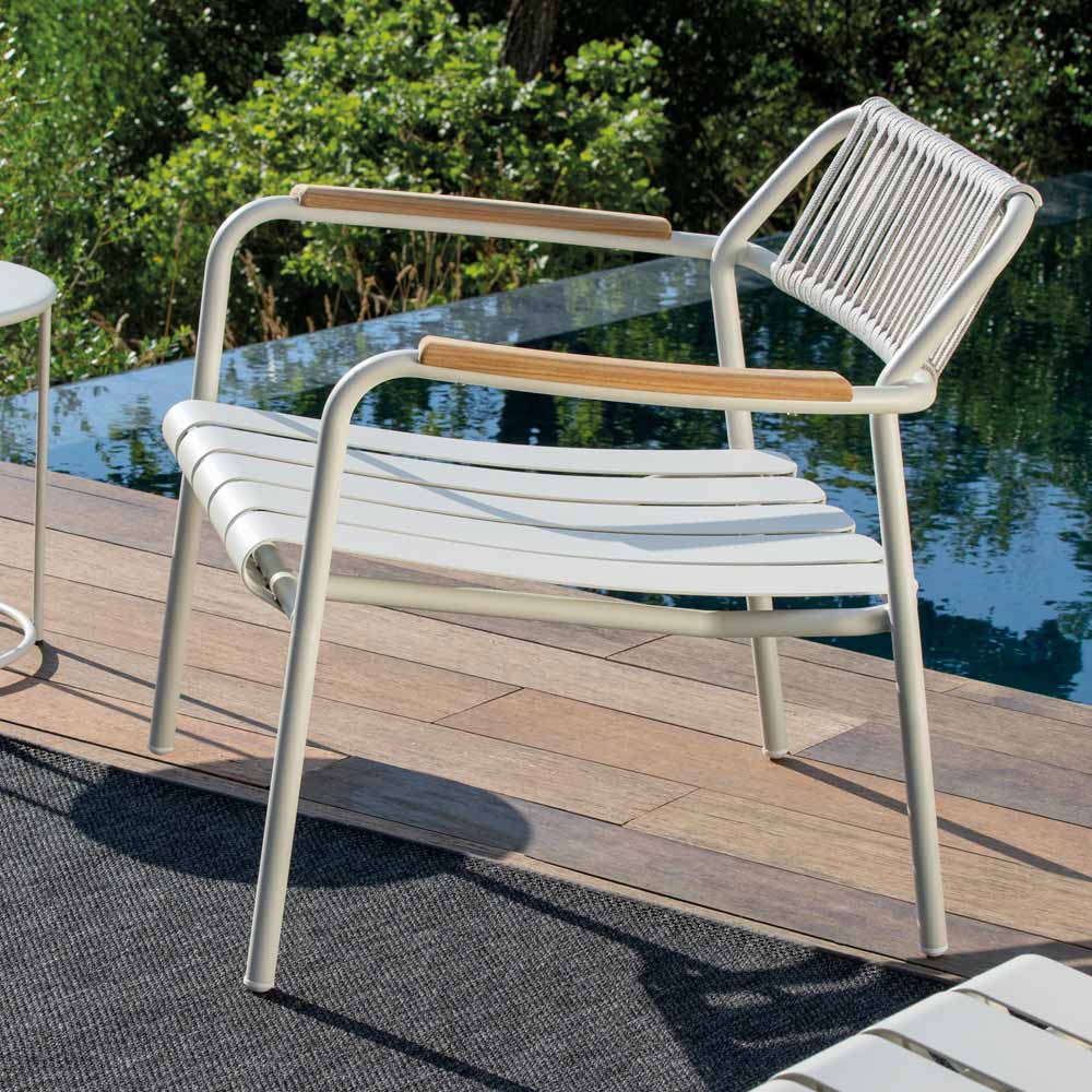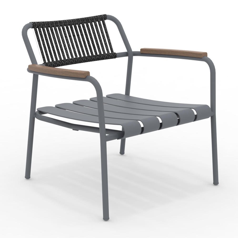 A estrutura leve, porém robusta, foi projetada para oferecer o máximo conforto, com assento ergonômico e encosto moldado em corda , que garantem um apoio confortável e relaxante. As ripas de alumínio conferem um visual dinâmico e moderno, enquanto o acabamento adiciona um toque de elegância e requinte.