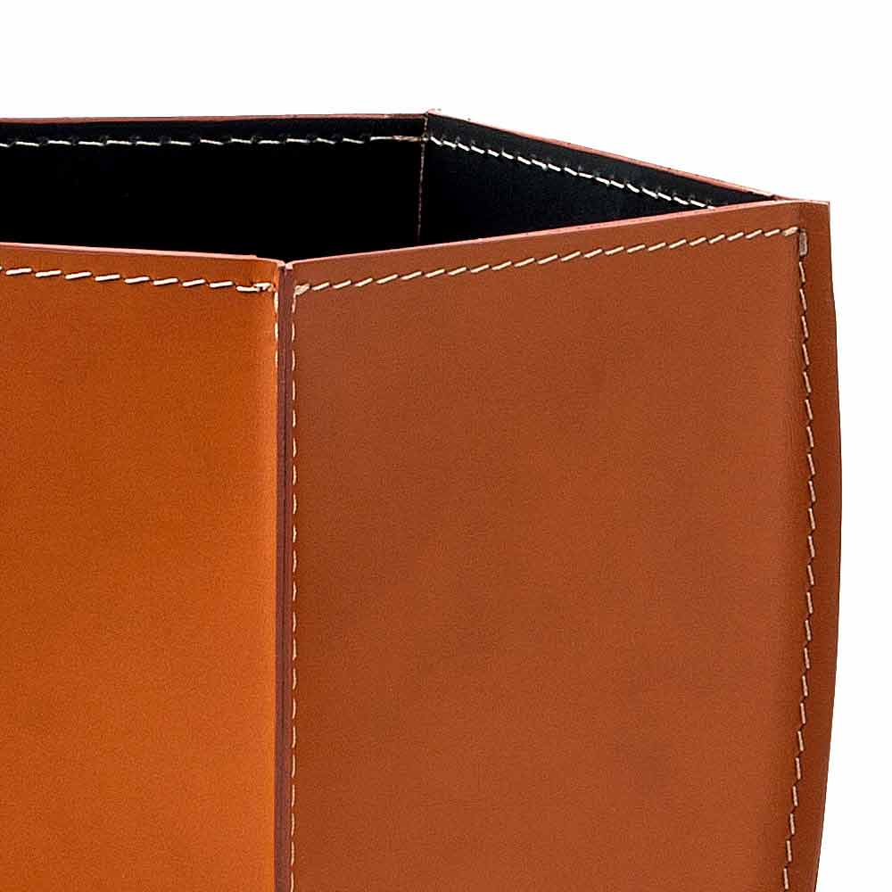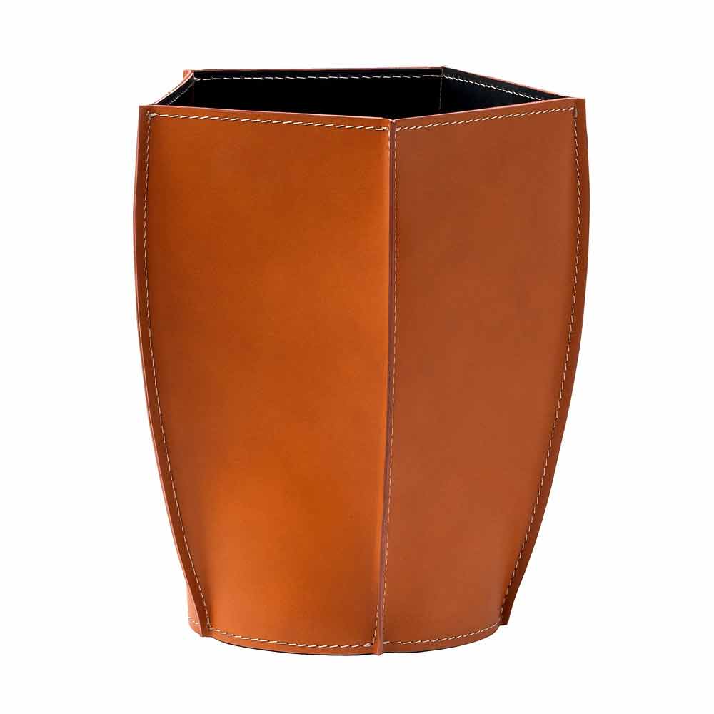 Polígono, cesto de lixo em couro regenerado e multicamadas