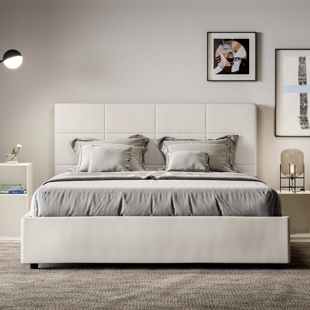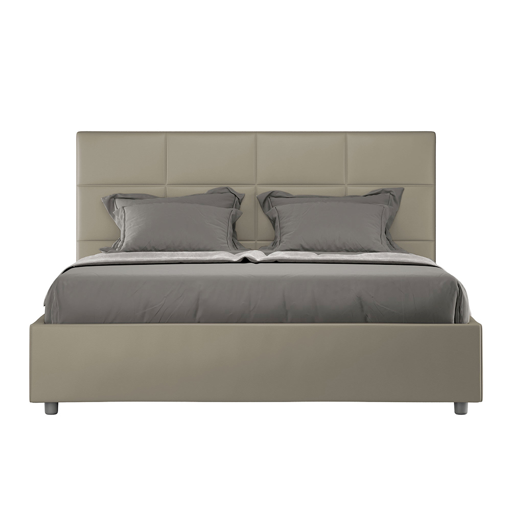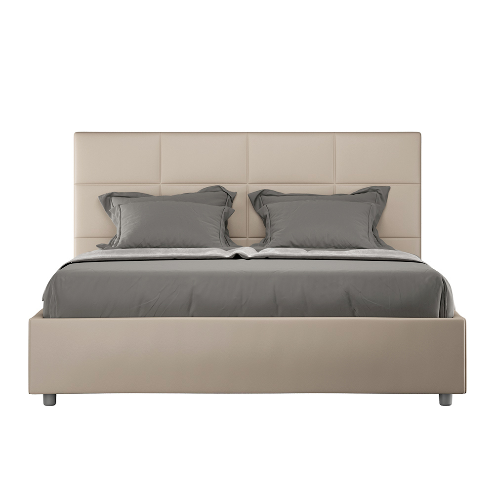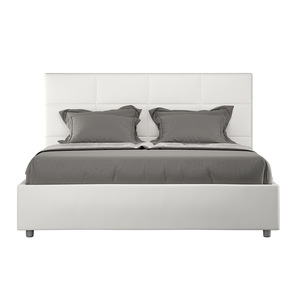 Cama de casal estofada de 160x200 cm revestida em couro sintético, fabricada na Itália.