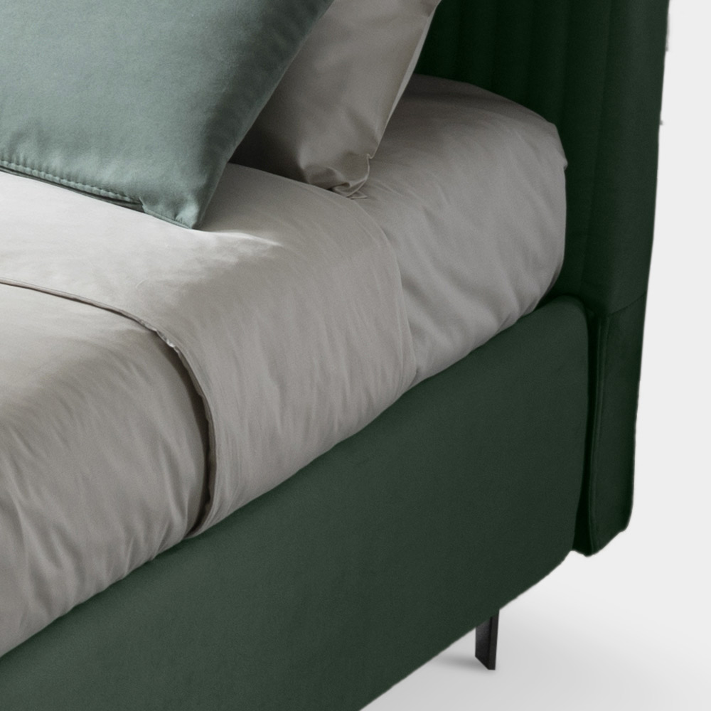- os painéis inferiores da caixa de arrumação, certificada na classe E1 com baixíssimo teor de formaldeído, são feitos de laminado de 10,5 mm de espessura, na cor cinza para combinar com o tecido interno da estrutura da cama, para permitir fácil limpeza e higiene usando um pano úmido comum para pó.