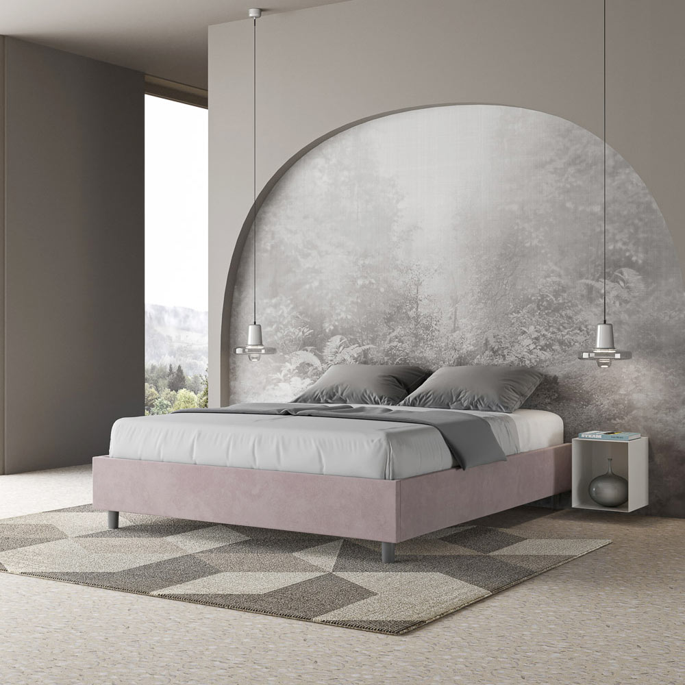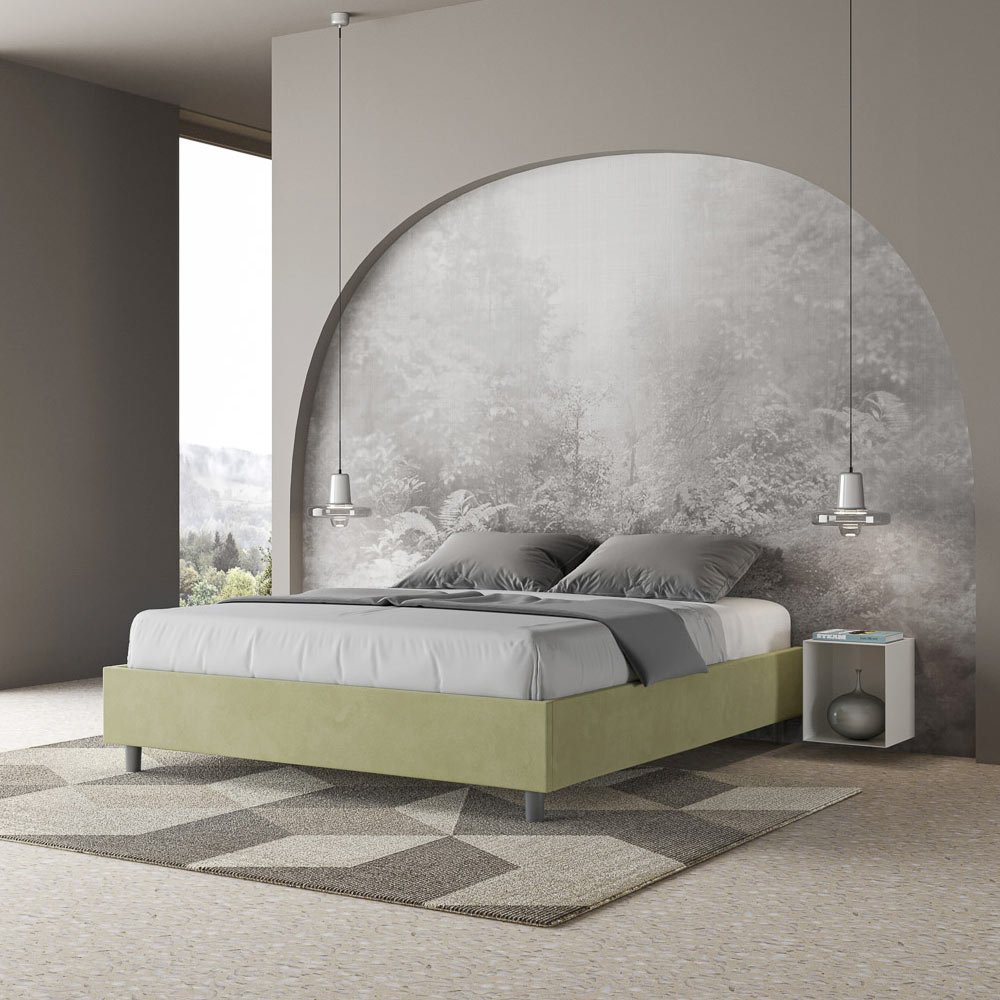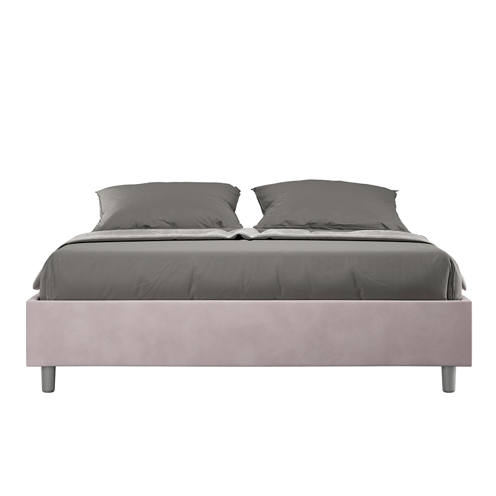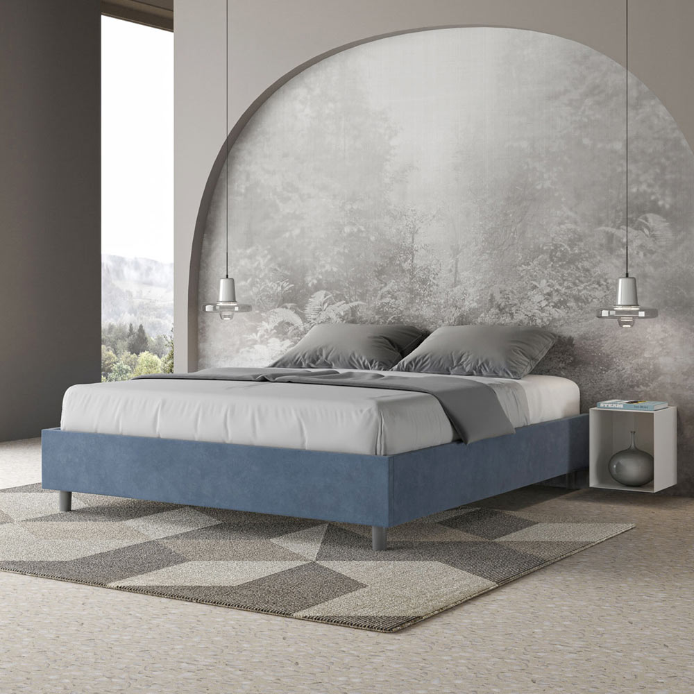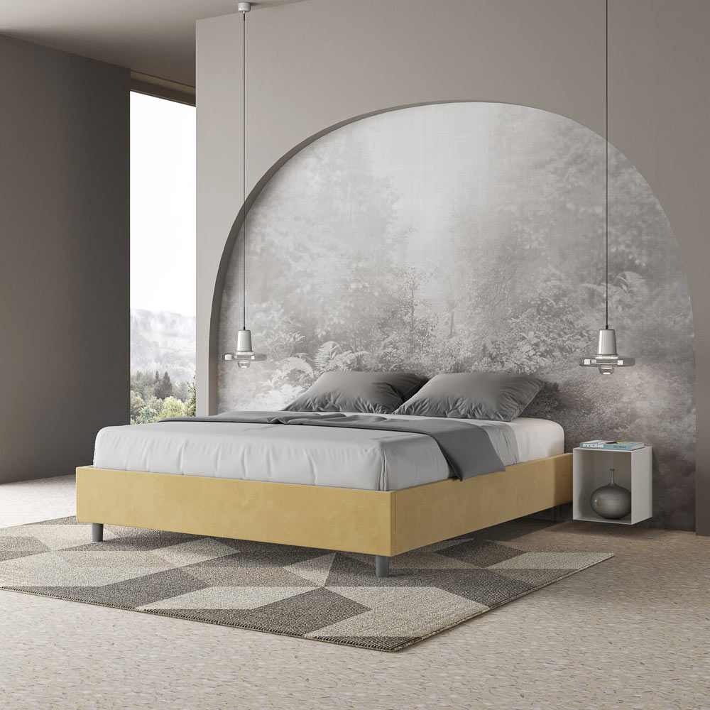 Cama de casal estofada de 160x200 cm, feita de painéis de aglomerado e revestida em microfibra , inteiramente fabricada na Itália. Esta cama de casal destaca-se pelo seu design minimalista e elegante . A sua estética discreta e versatilidade permitem que se integre facilmente em qualquer ambiente. Uma das suas características marcantes é a ausência de uma cabeceira tradicional , o que a torna ideal para ser colocada em espaços únicos, como debaixo de uma janela, num sótão ou perto de uma parede decorativa, sem obstruir a vista nem alcançar o efeito desejado.