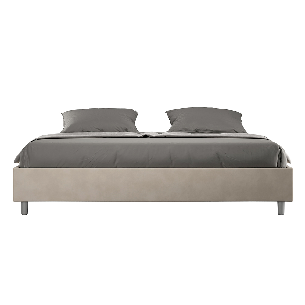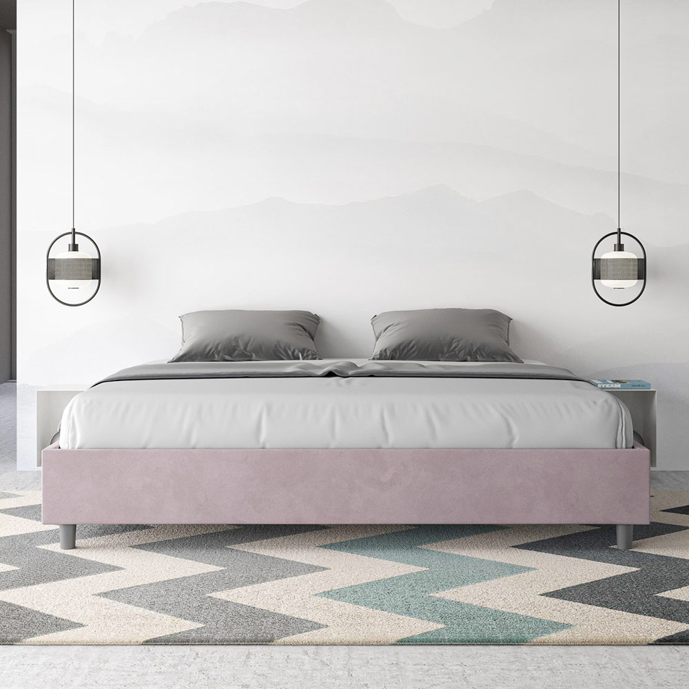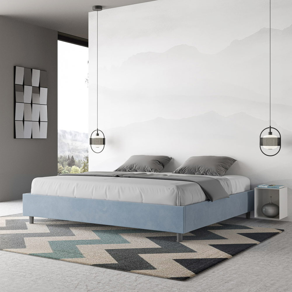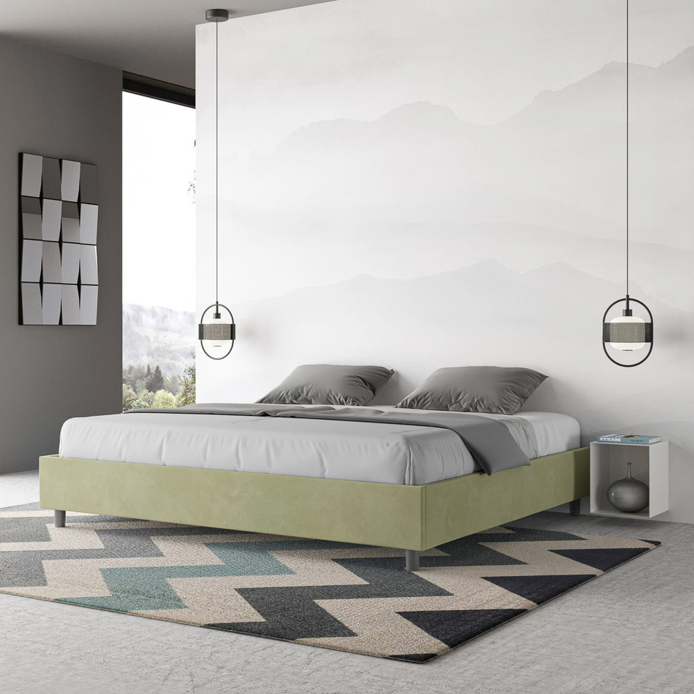 Cama king size 180x200 cm estofada, feita com painéis de melamina e revestida em microfibra , inteiramente fabricada na Itália. Esta cama king-size destaca-se pelo seu design minimalista e elegante . A sua estética discreta e versatilidade permitem que se integre facilmente em qualquer ambiente. Uma das suas características marcantes é a ausência de uma cabeceira tradicional , o que a torna ideal para ser colocada em espaços únicos, como debaixo de uma janela, num sótão ou perto de uma parede decorativa, sem obstruir a vista nem alcançar o efeito desejado.