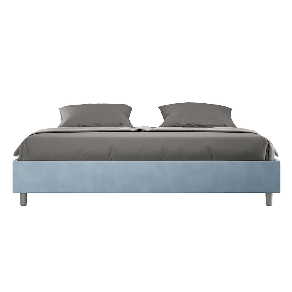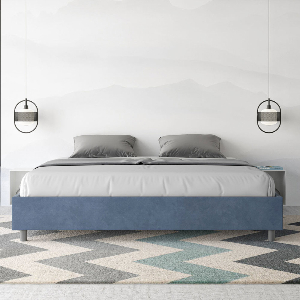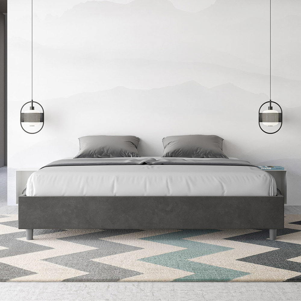 Cama king size 190x200 cm estofada, feita com painéis de melamina e revestida em microfibra , inteiramente fabricada na Itália. Esta cama king-size destaca-se pelo seu design minimalista e elegante . A sua estética discreta e versatilidade permitem que se integre facilmente em qualquer ambiente. Uma das suas características marcantes é a ausência de uma cabeceira tradicional , o que a torna ideal para ser colocada em espaços únicos, como debaixo de uma janela, num sótão ou perto de uma parede decorativa, sem obstruir a vista nem alcançar o efeito desejado.