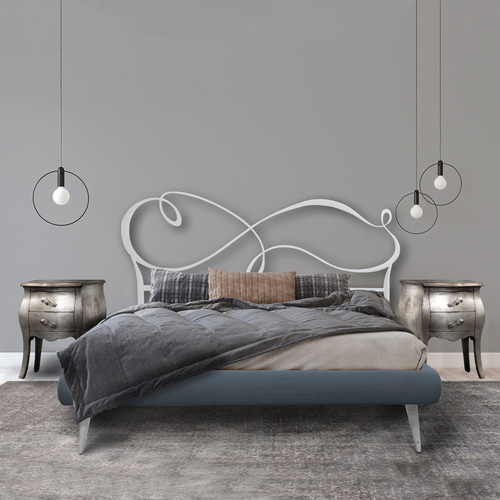 Cama de casal com cabeceira de ferro e 2 mesas de cabeceira Fabricado na Itália