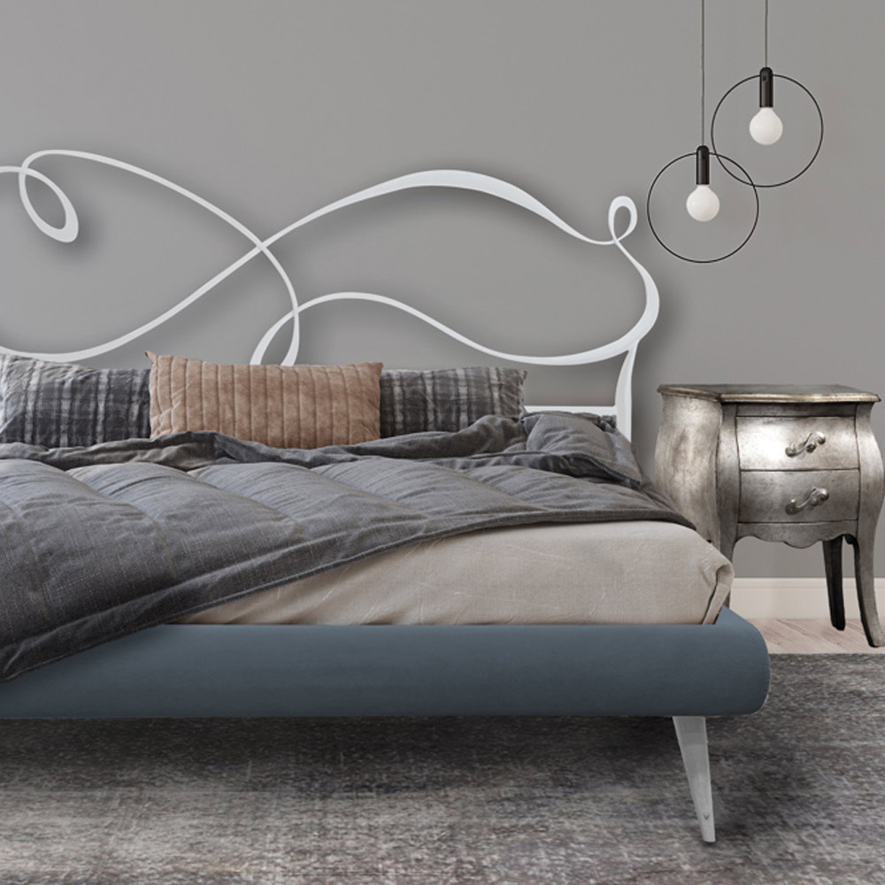 Esta cama nasceu da vontade de criar um ambiente leve e suspenso no quarto. As linhas criam um sopro de vento que ilumina a estrutura e a torna perfeita para completar o mobiliário de qualquer zona de dormir sem sacrificar a funcionalidade e o conforto.