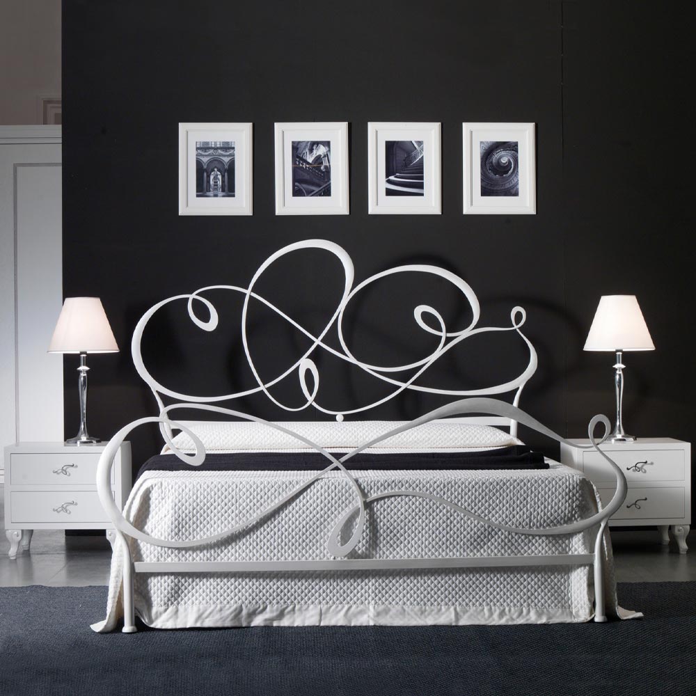 Cama de casal com cabeceira de ferro e 2 mesas de cabeceira Fabricado na Itália