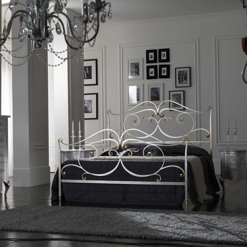 Cama de casal com cabeceira e estribo de ferro coordenados Fabricado na Itália