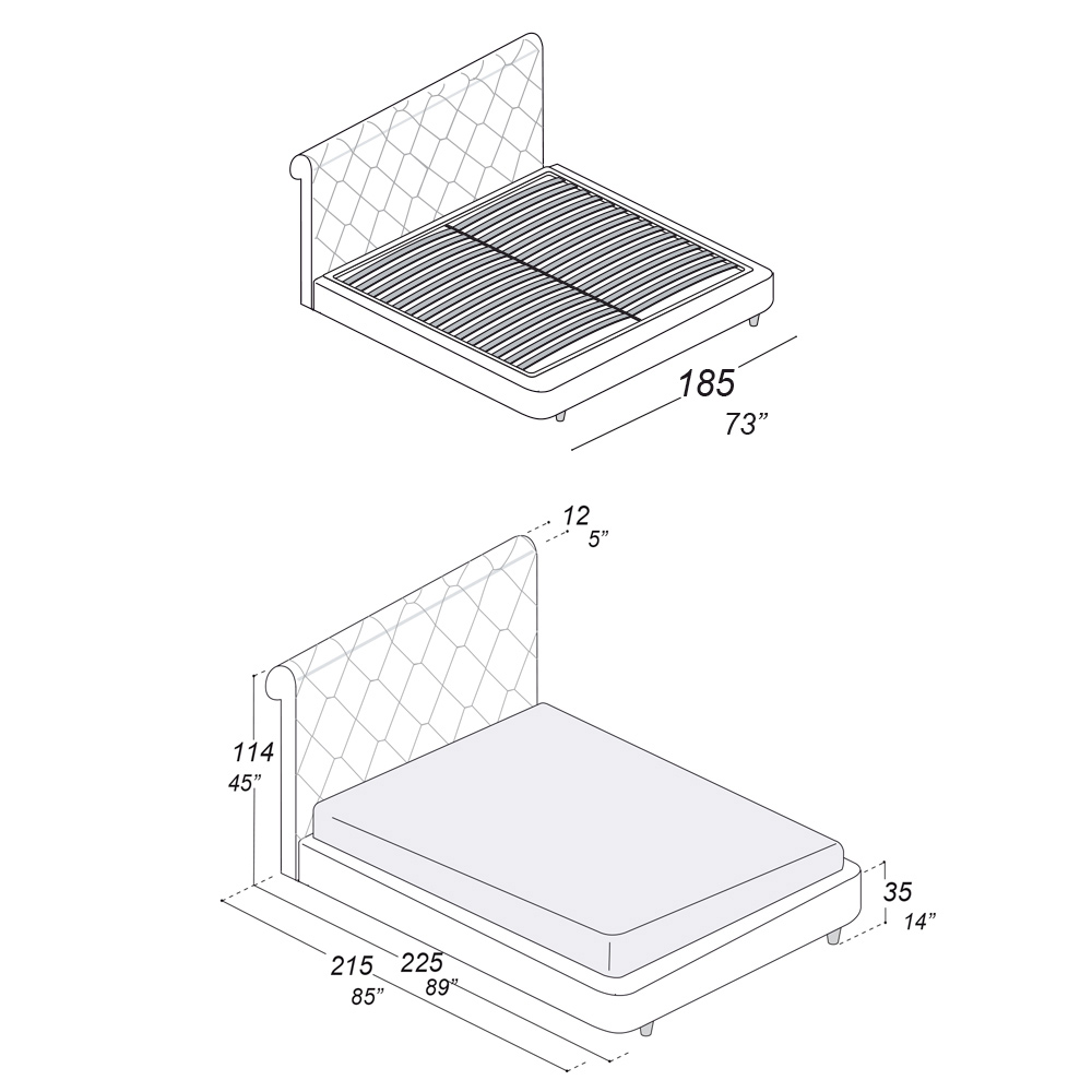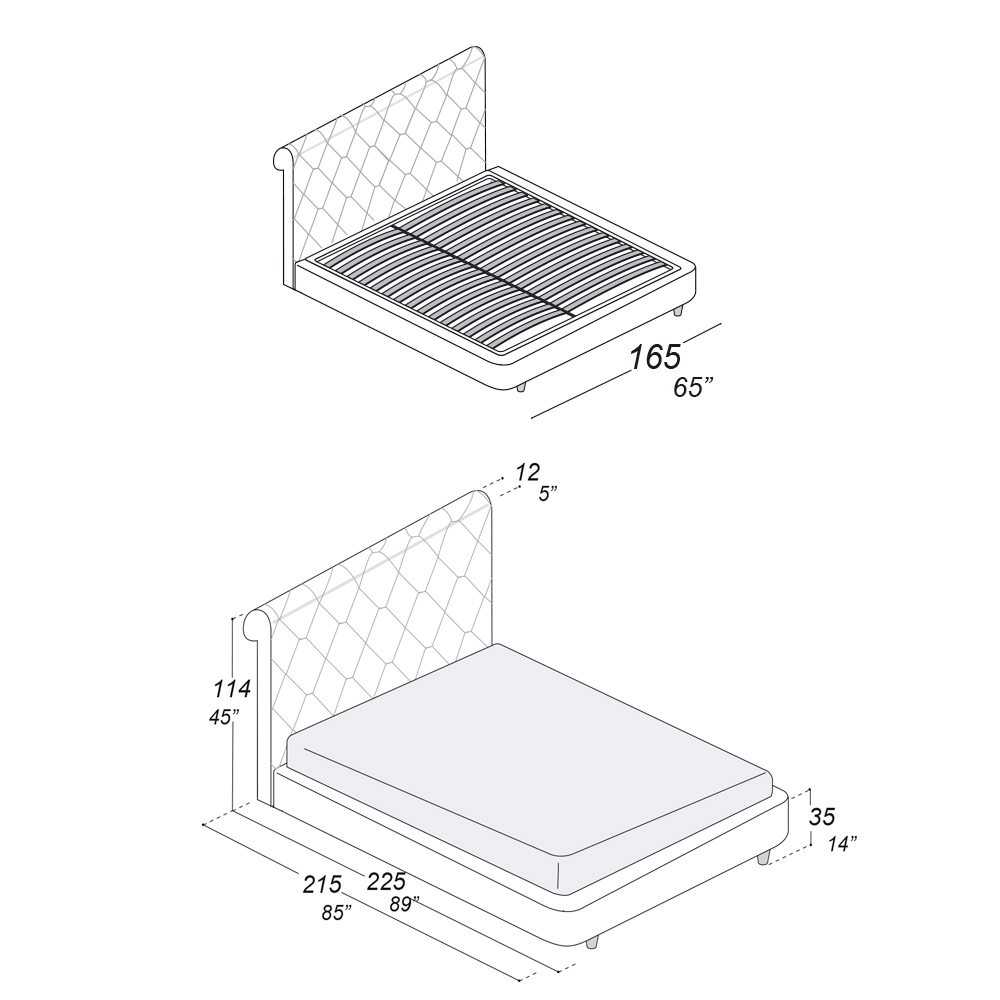 - comprimento: 185 cm x profundidade: 225 cm x altura: 114 cm - adequado para um colchão de 160x200 cm