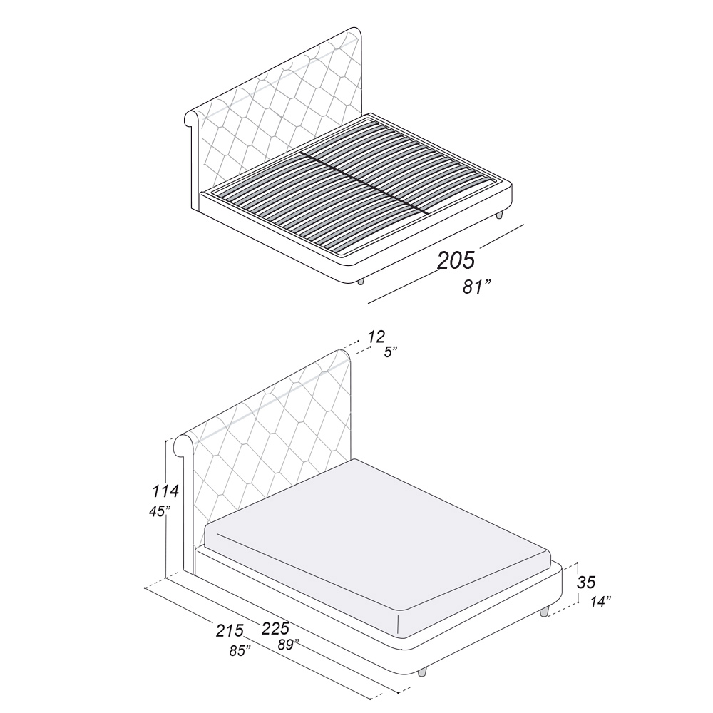 - comprimento: 205 cm x profundidade: 225 cm x altura: 114 cm - adequado para um colchão de 180x200 cm