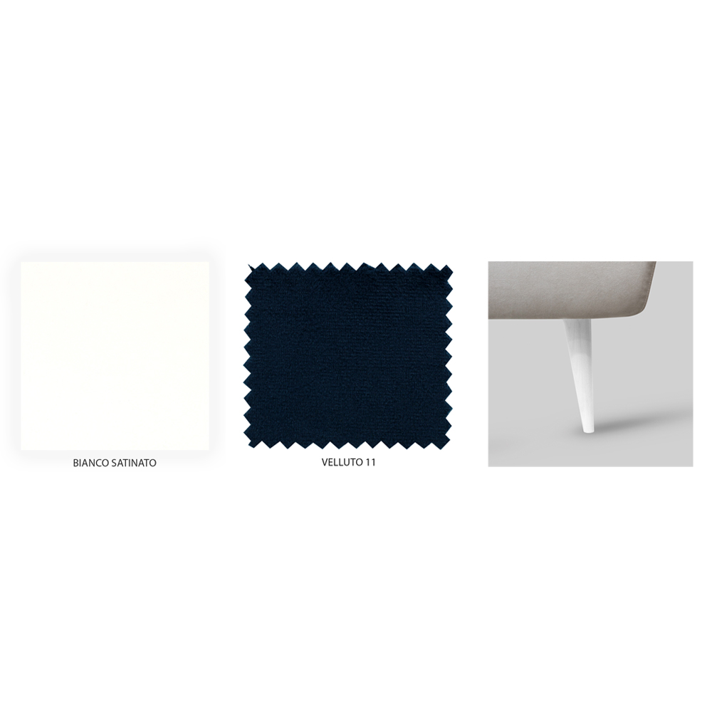 - Modelo H 25 pés: cabeceira branca acetinada, estrutura de cama em veludo cinza/azul 11 e pés de madeira brancos