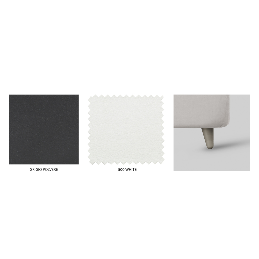 Acabamentos disponíveis:- Modelo H 11 pés: cabeceira cinza pó, estrutura de cama em couro ecológico branco e pés em polipropileno cinza pomba