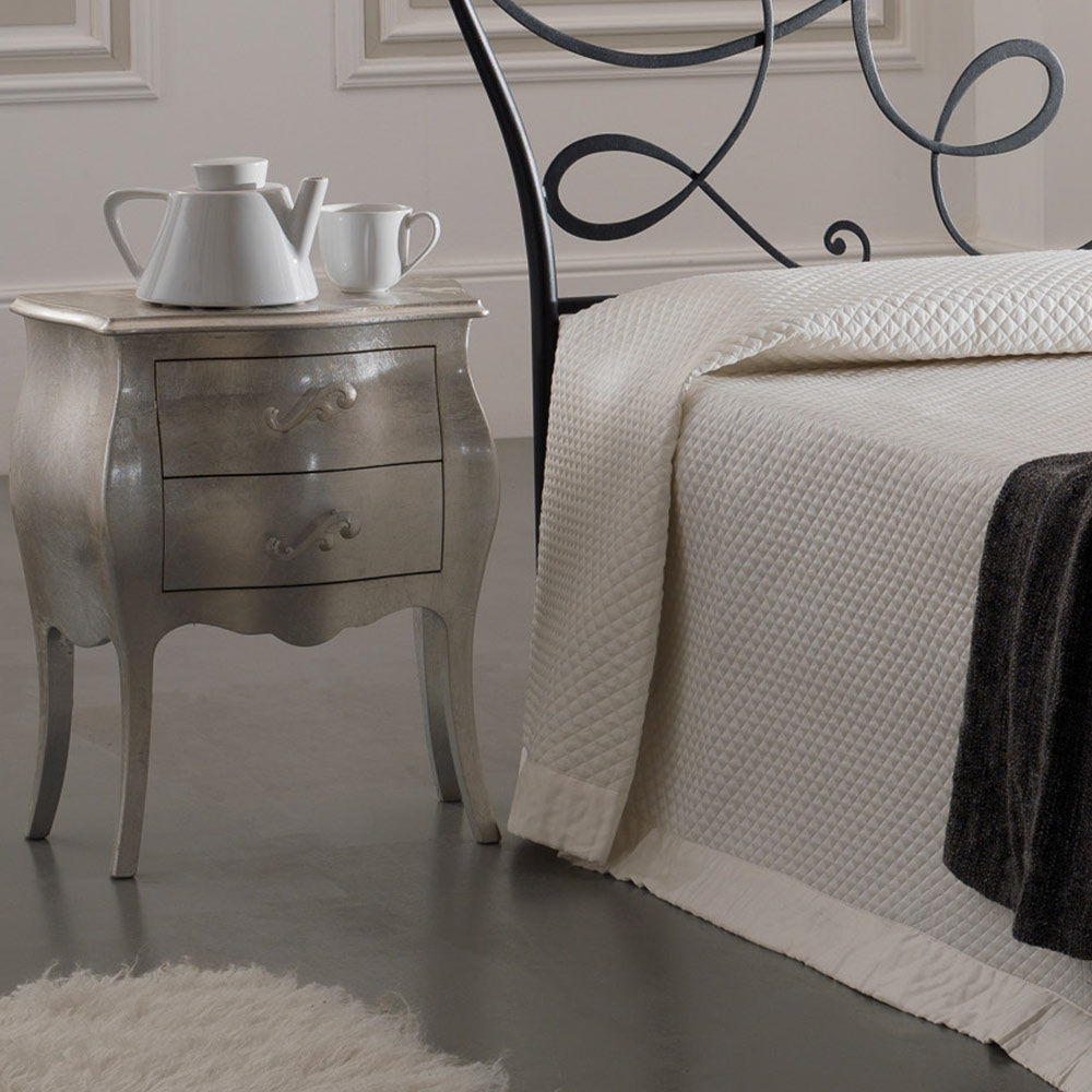 - cama de folha de prata mecata, mesas de cabeceira de folha de prata