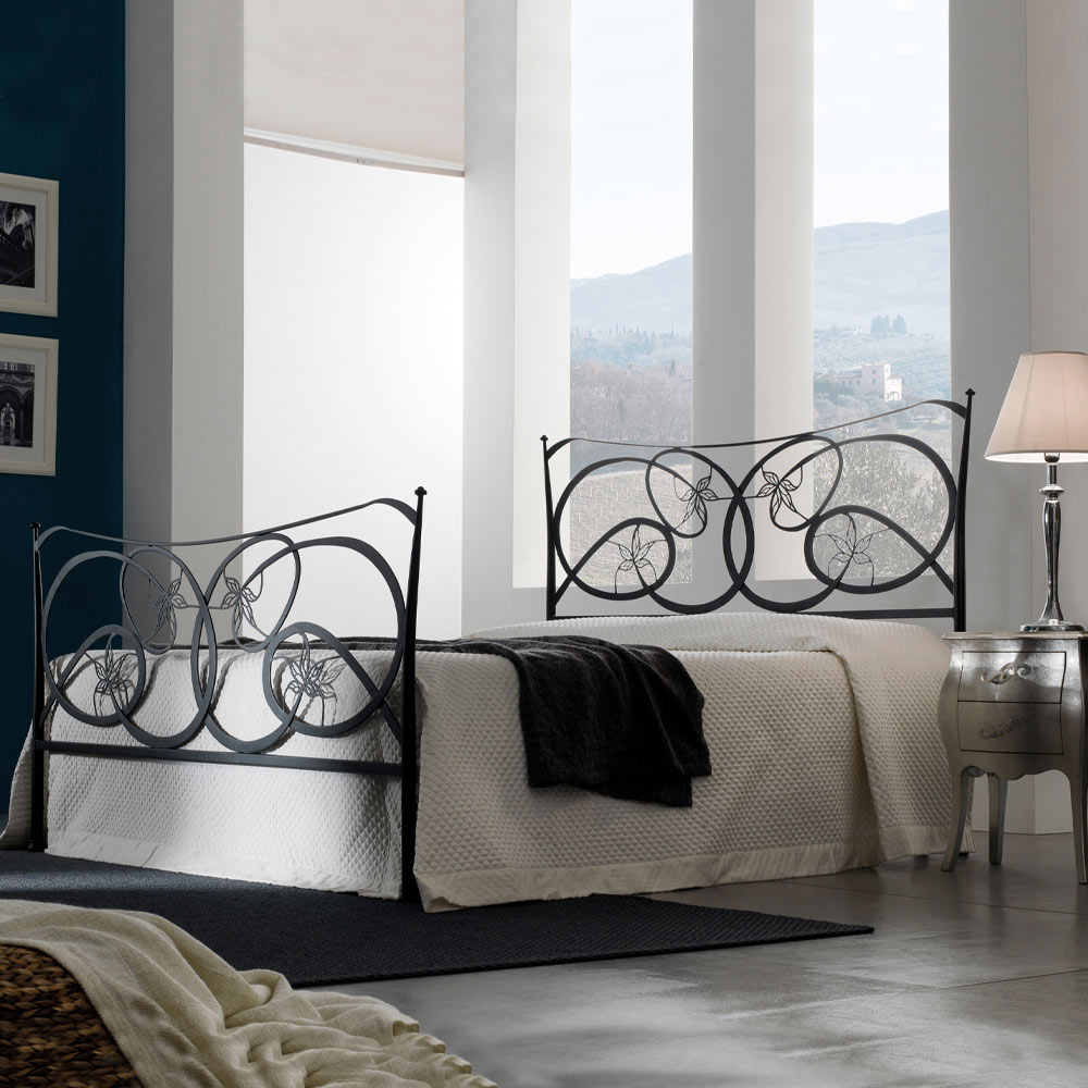 Cama de casal com cabeceira de ferro e 2 mesas de cabeceira Fabricado na Itália
