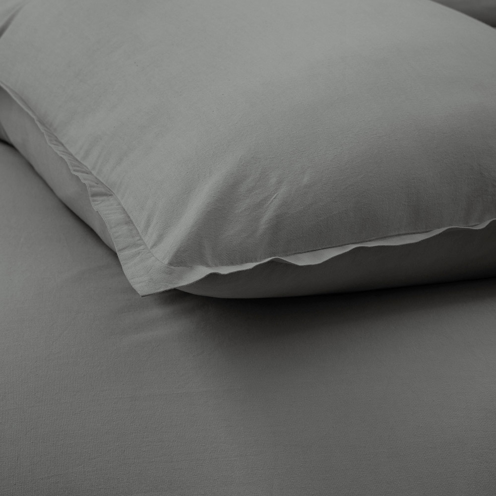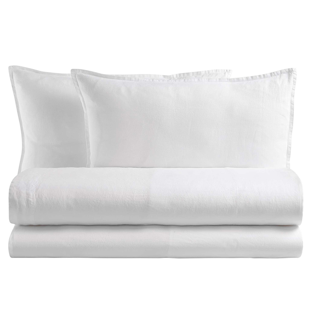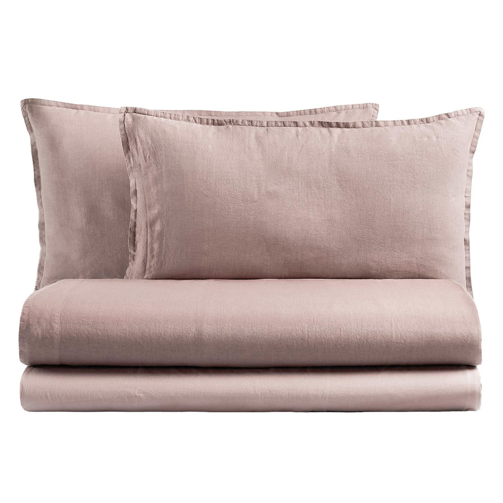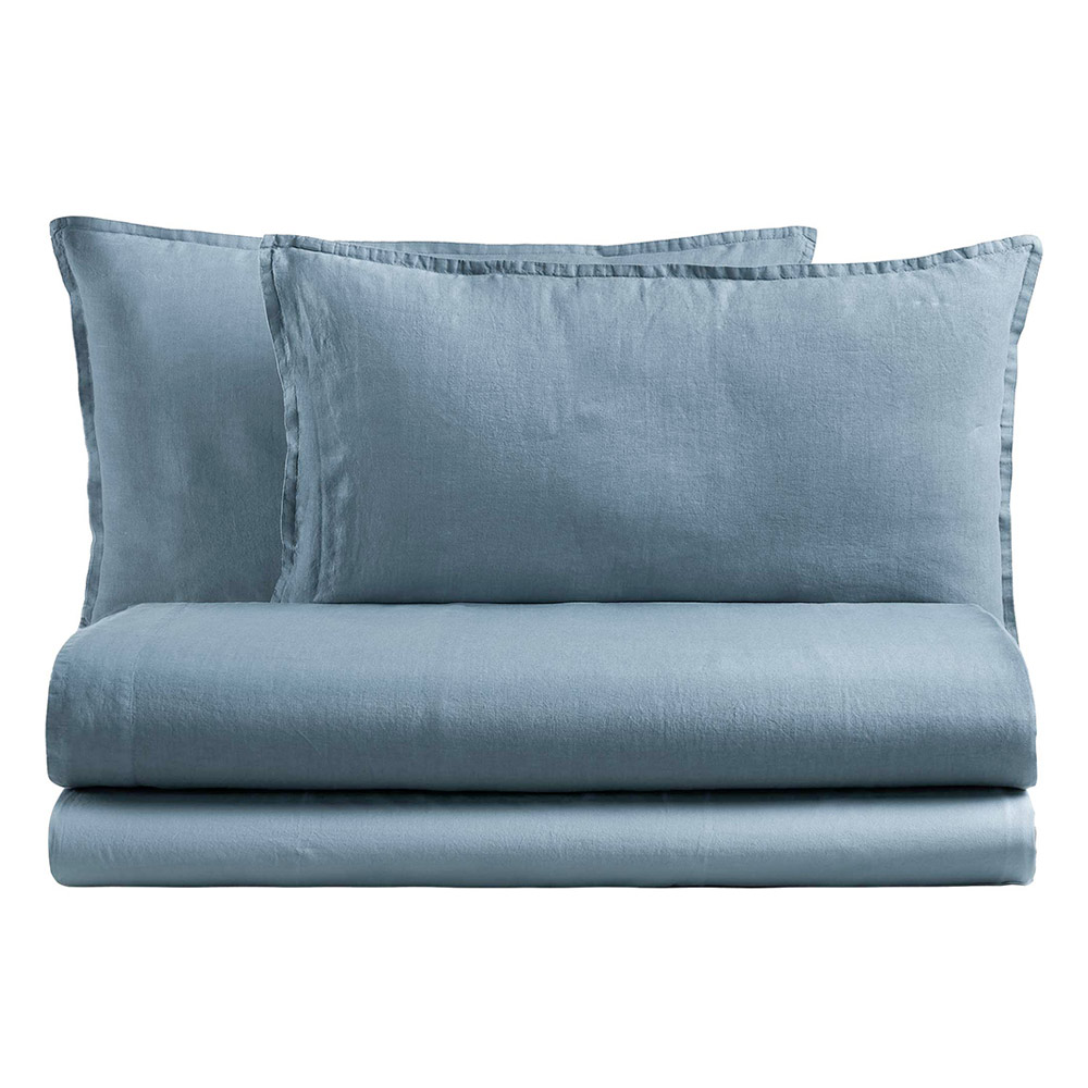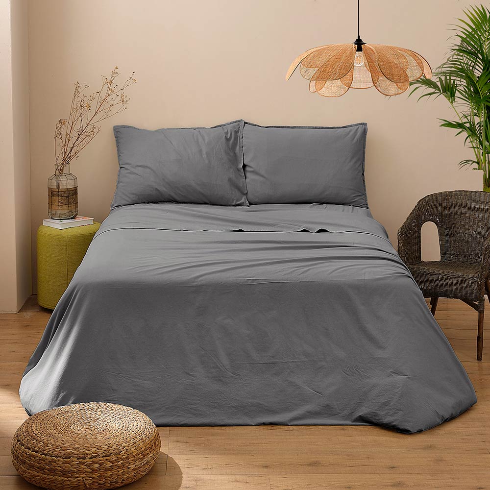 um lençol plano, um lençol com elástico e duas fronhas . Fronhas: estilo bolsa, bainha de 1,1,5 cm nos 4 lados. O