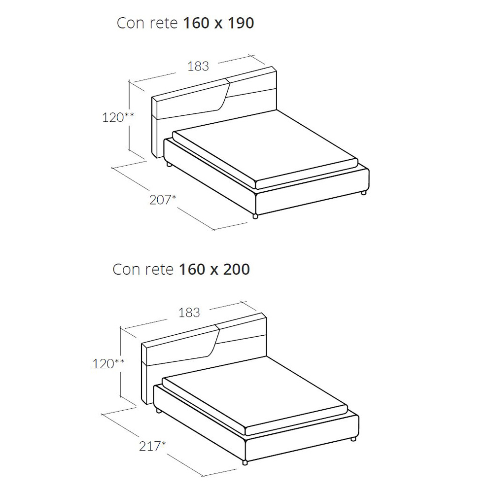- L183 x H120 x P219 cm (para estrado 160x200)