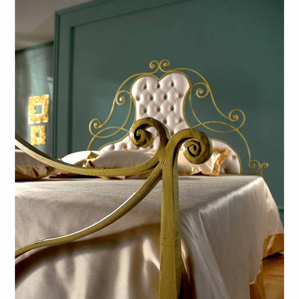 A cama de ferro forjado na variante CABECEIRA DUPLA COM ESTRUTURA DE CAMA requer a inserção de um estrado de 160 X 190 que deve ser aplicado apoiado sobre o estrado. Caso existam necessidades particulares relacionadas com a conformação física, com a combinação com estrados existentes ou simplesmente com a estética, este modelo, graças à nossa produtividade artesanal, pode ser modificado tanto em altura como em comprimento.