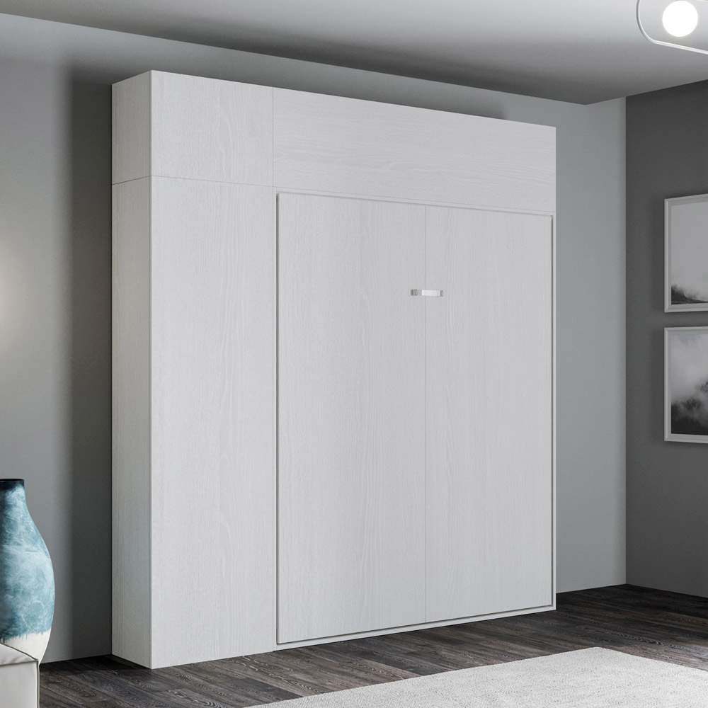 - 233,6 x 39,2 x 250,5 cm (aberto x 215 cm) - Composição proposta com uma coluna prática e espaçosa, que pode ser posicionada à esquerda ou à direita da cama, e com dois armários de parede que permitem guardar tudo o que você precisa, para um quarto sempre organizado. Coluna e armários de parede com portas com abertura push-pull. O armário de parede acima da coluna tem uma abertura com dobradiças à direita ou à esquerda, enquanto o armário de parede horizontal tem uma abertura vasista.