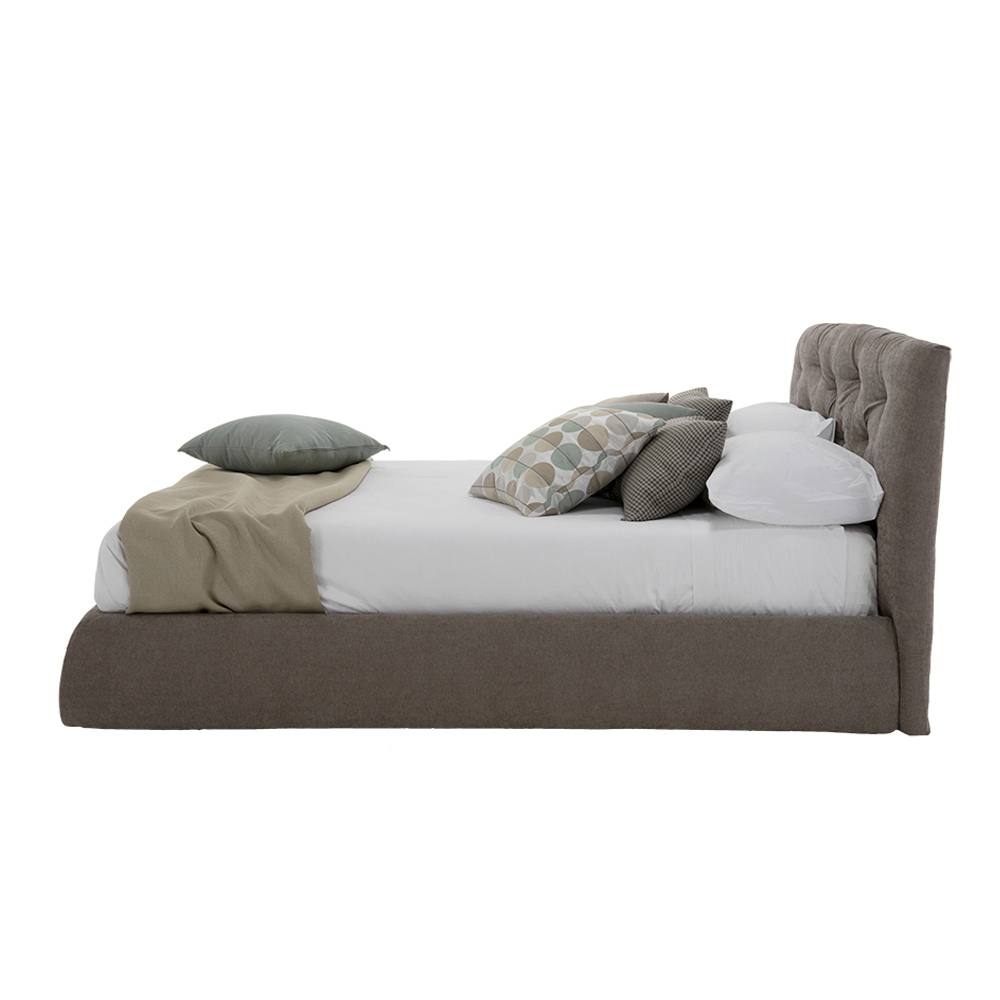 Cama de casal de luxo estofada em tecido ou couro ecológico, feita à mão na Itália com caixa de armazenamento.