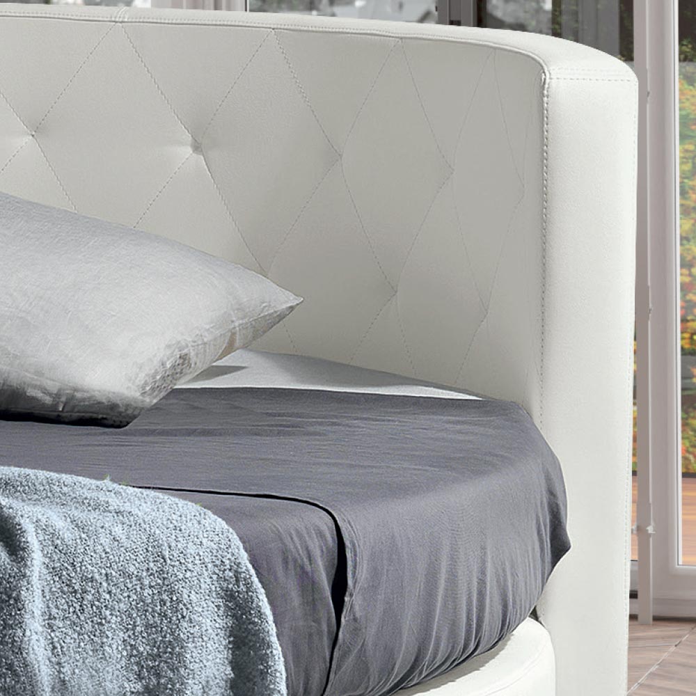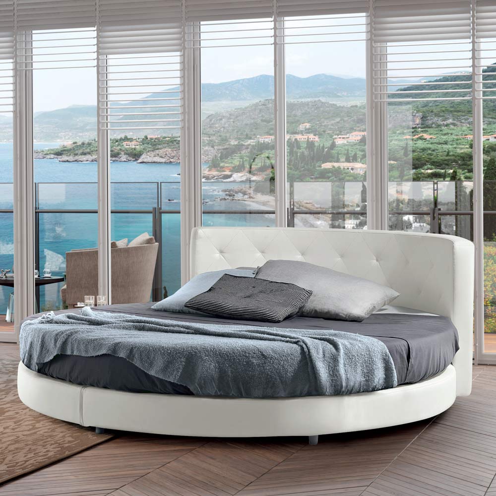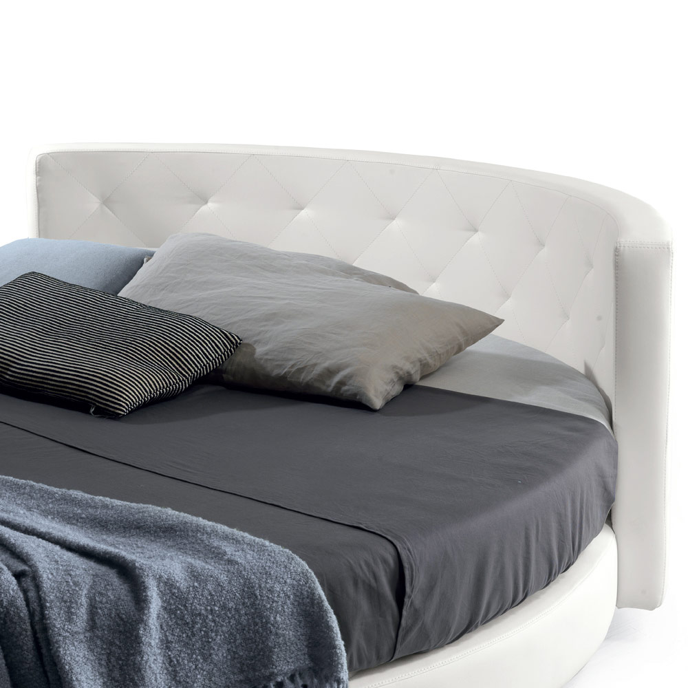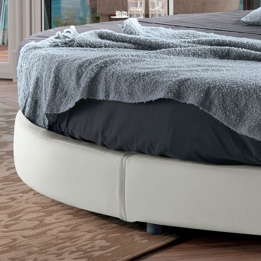 Cama de casal redonda fabricada na Itália, acolchoada e revestida em couro ecológico.