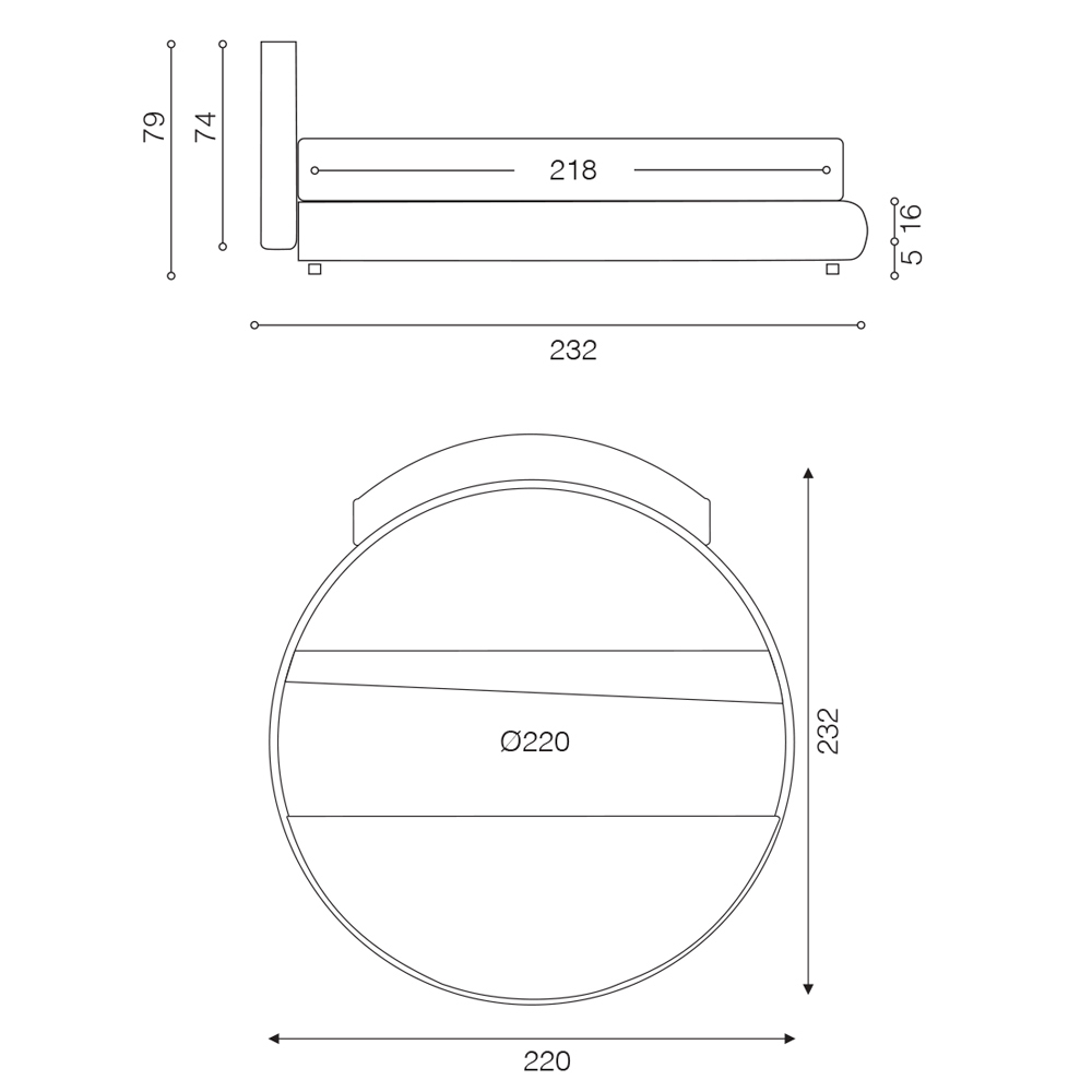 - Versão com diâmetro de 218 cm com placa de poliuretano, H 18 cm