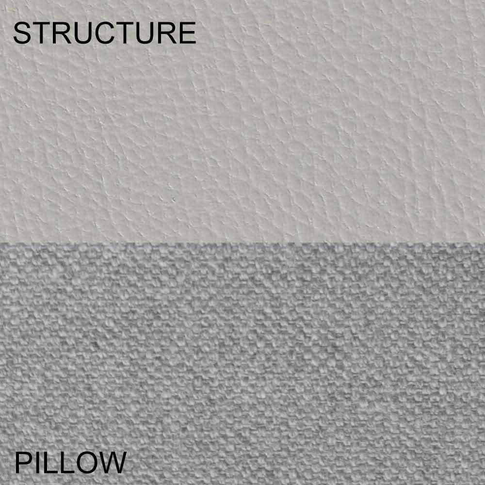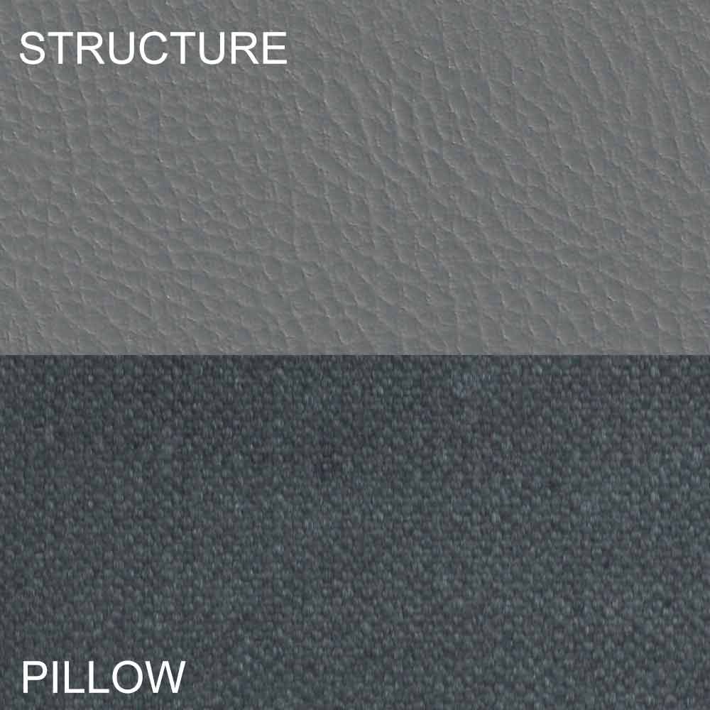 Sua estrutura é composta por duas meias-luas em compensado revestido com veludo acoplado, autoportante.