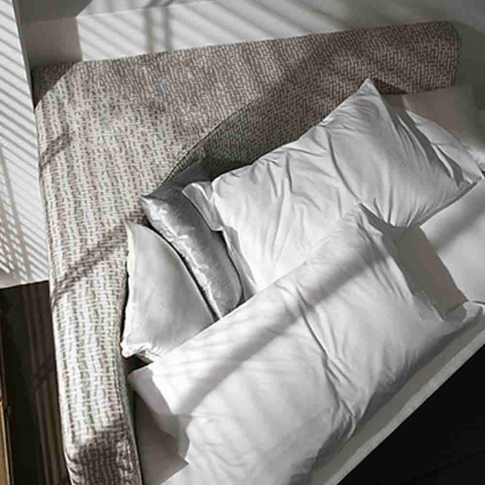 Cama de casal redonda revestida em tecido com cabeceira de canto, design Made in Italy.