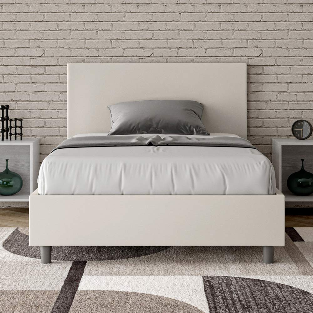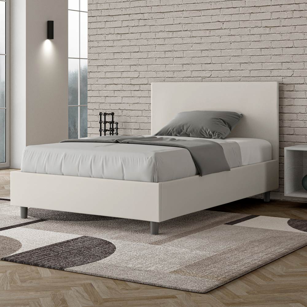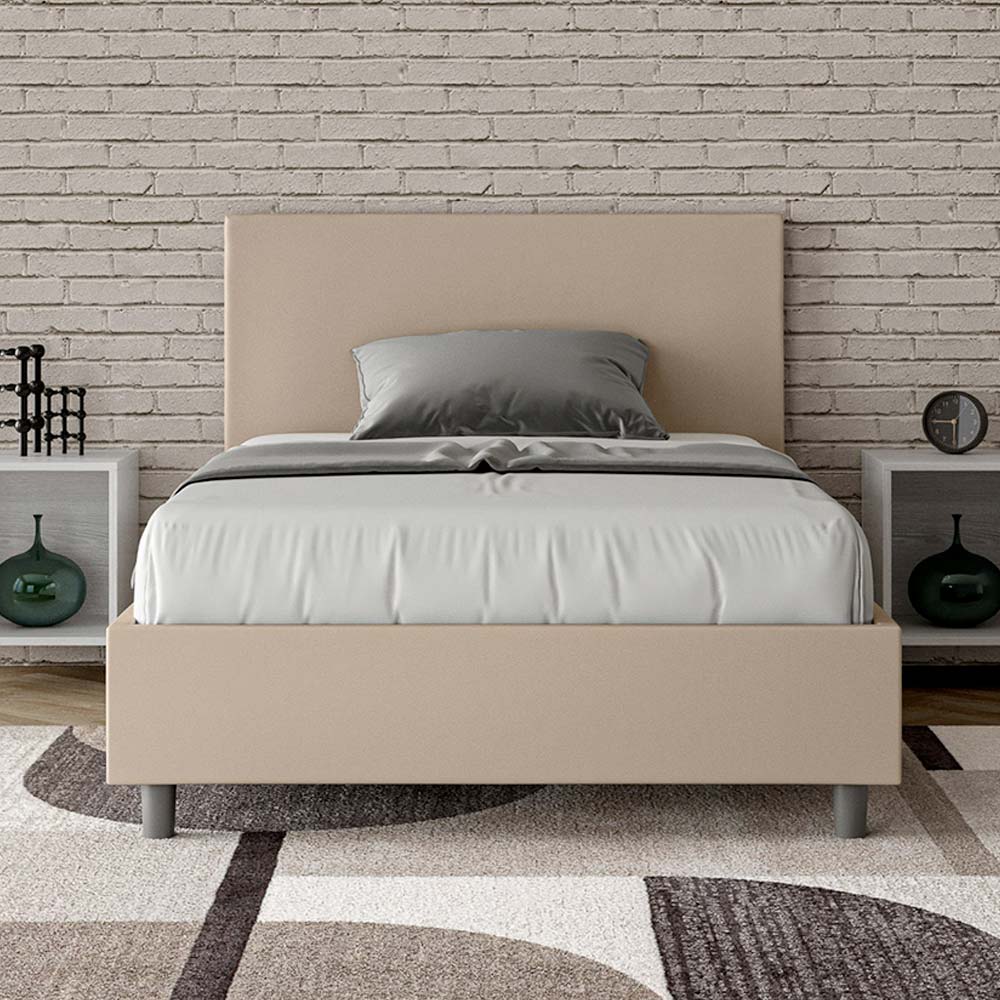 Cama de casal estofada de 120x200 cm, feita de painéis de aglomerado e revestida em imitação de couro , inteiramente fabricada na Itália. Esta cama de casal queen-size possui uma estrutura acolchoada e é um ícone de estilo discreto e elegante. Com cabeceira em couro sintético , esta cama se integra perfeitamente a qualquer ambiente, adicionando um toque distinto de classe e luxo, tipicamente italiano. A manutenção é fácil: basta limpar com um pano de microfibra para preservar sua beleza ao longo do tempo.