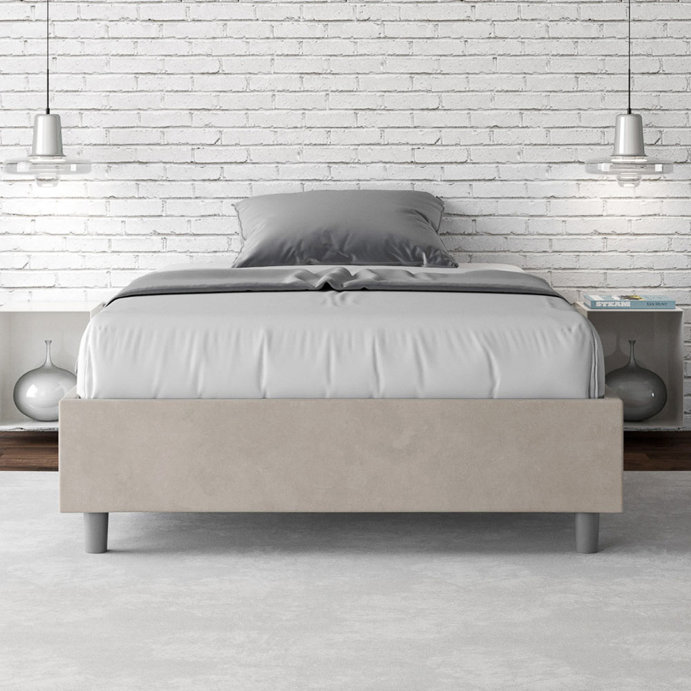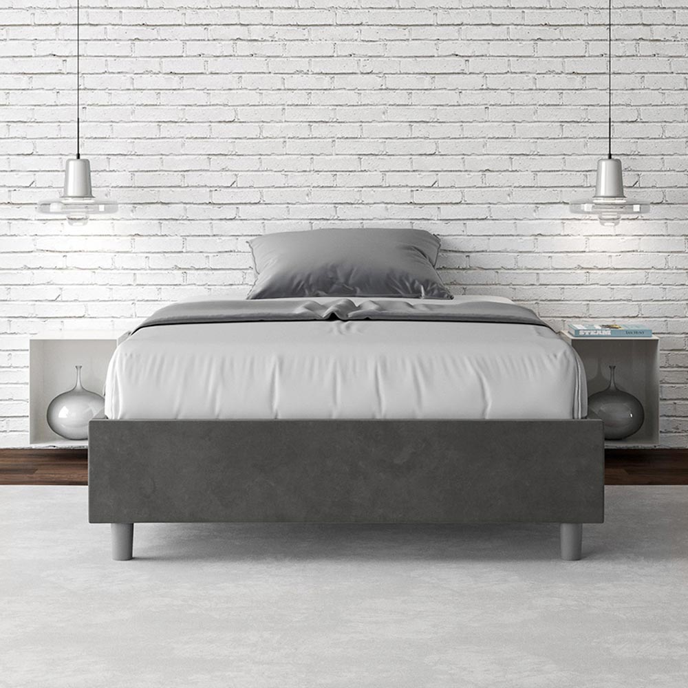 Cama de casal tamanho queen, estofada, 120x200 cm, feita de painéis de aglomerado e revestida em microfibra , inteiramente fabricada na Itália. Esta cama de casal destaca-se pelo seu design minimalista e elegante . A sua estética discreta e versatilidade permitem que se integre facilmente em qualquer ambiente. Uma das suas características marcantes é a ausência de uma cabeceira tradicional , o que a torna ideal para ser colocada em espaços únicos, como debaixo de uma janela, num sótão ou perto de uma parede decorativa, sem obstruir a vista nem alcançar o efeito desejado.