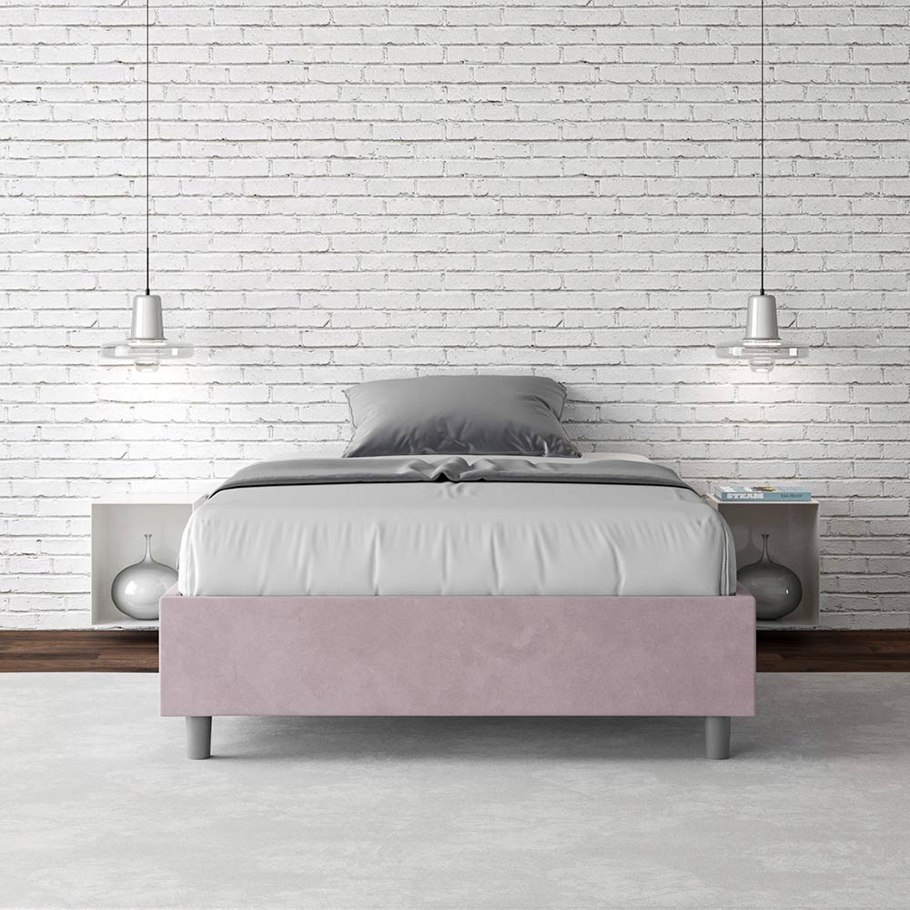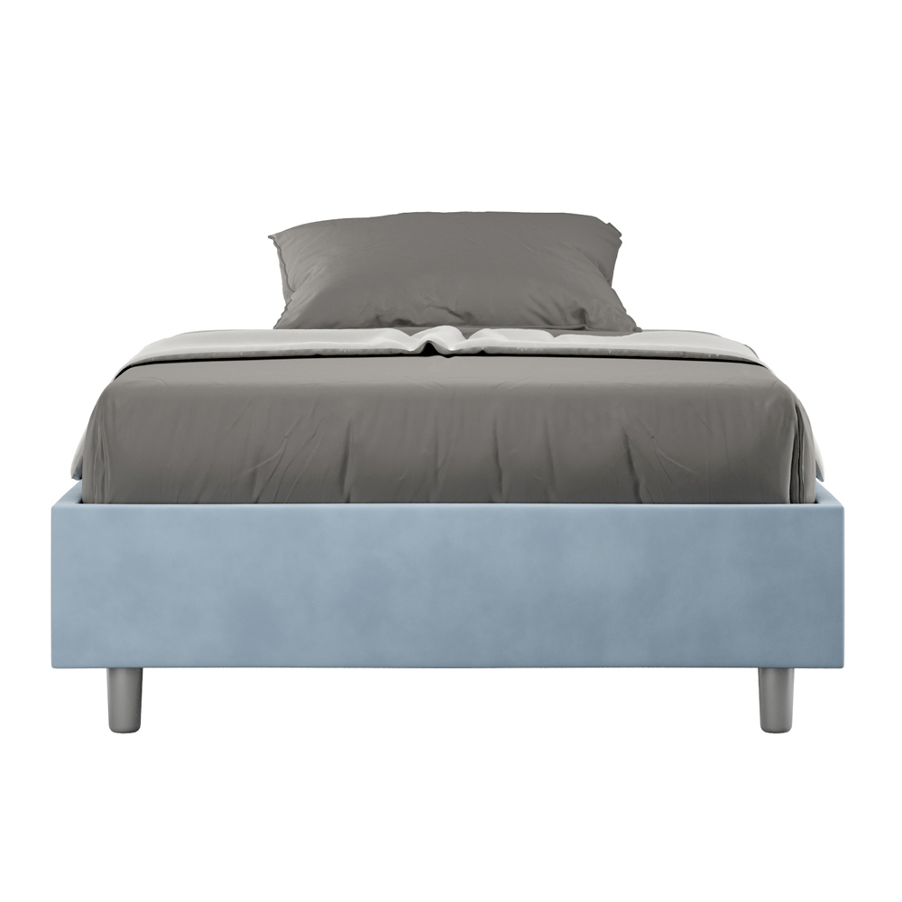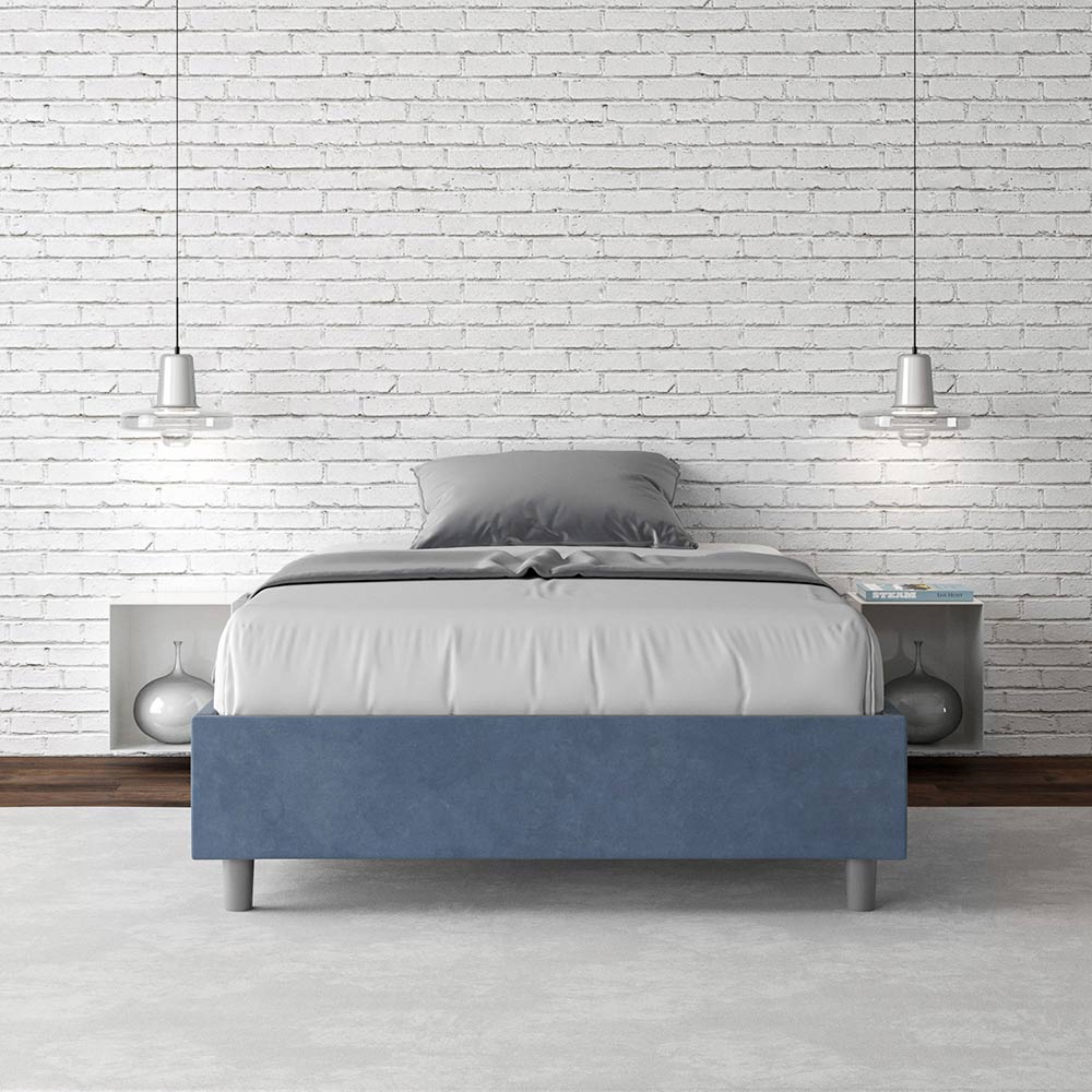 Cama de casal tamanho Queen (120x200 cm) estofada e revestida em microfibra, fabricada na Itália.