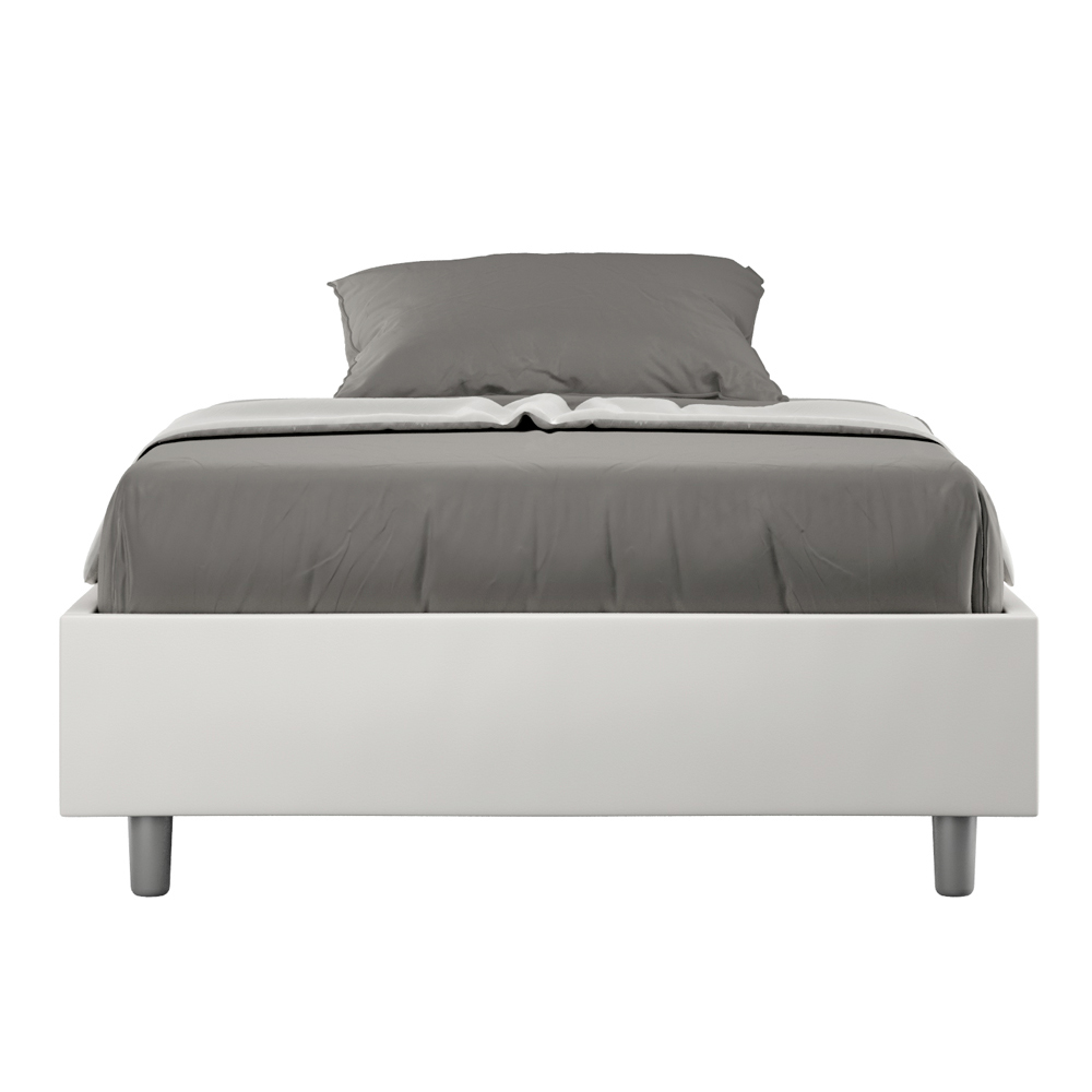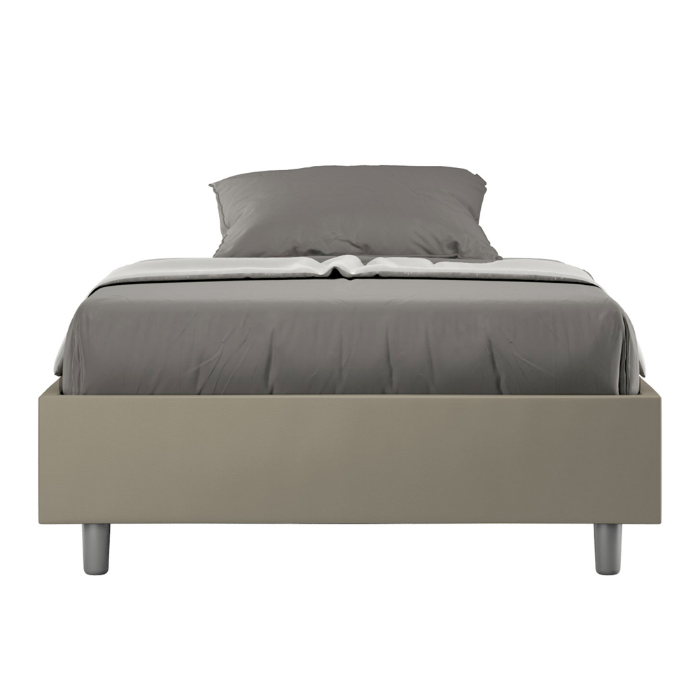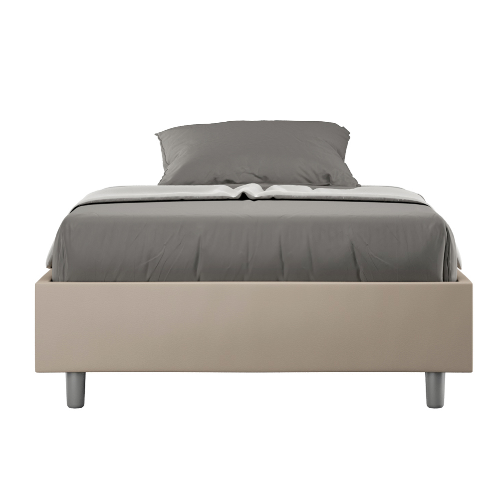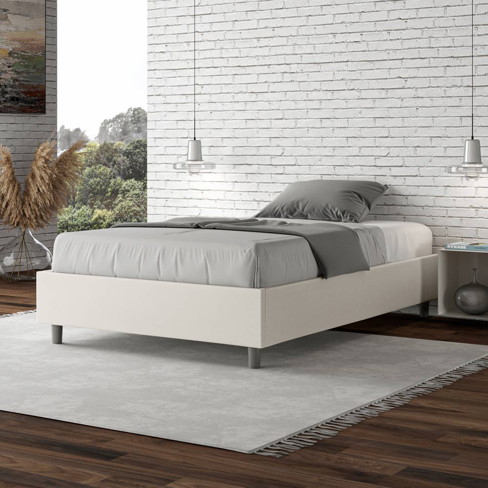 Cama francesa 140x200 cm estofada e revestida em couro sintético, fabricada na Itália.