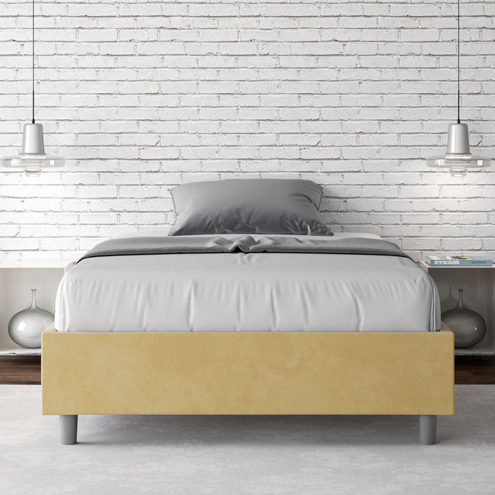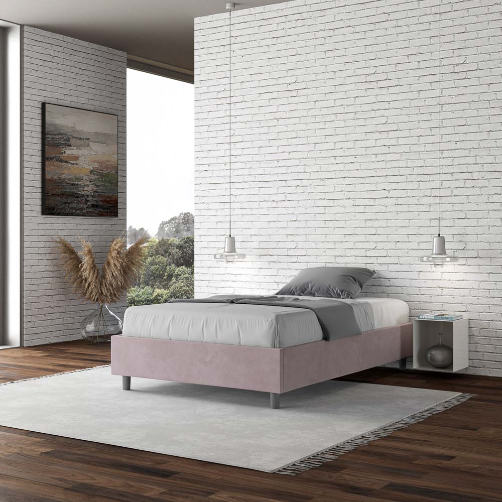 Cama francesa estofada de 140x200 cm, feita com painéis de melamina e revestida em microfibra , inteiramente fabricada na Itália. Esta cama francesa destaca-se pelo seu design minimalista e elegante . A sua estética discreta e versatilidade permitem que se integre facilmente em qualquer ambiente. Uma das suas características marcantes é a ausência de uma cabeceira tradicional , o que a torna ideal para ser colocada em espaços únicos, como debaixo de uma janela, num sótão ou perto de uma parede decorativa, sem obstruir a vista nem alcançar o efeito desejado.