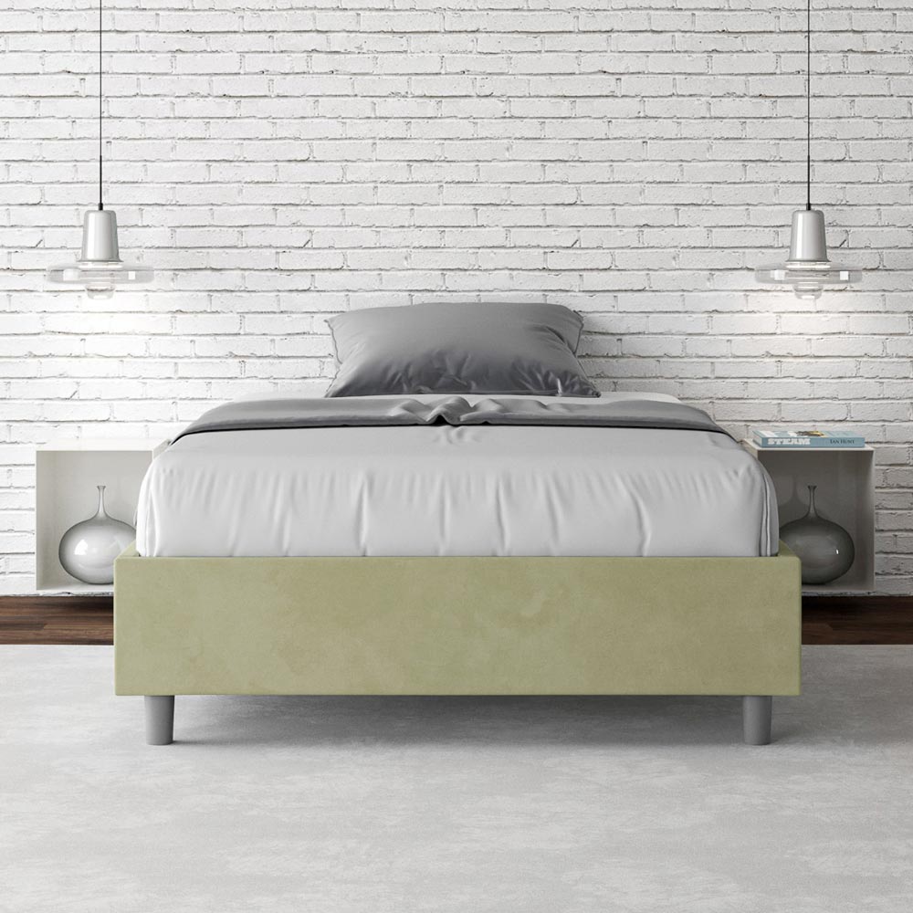 Cama francesa 140x200 cm estofada e revestida em microfibra, fabricada na Itália.